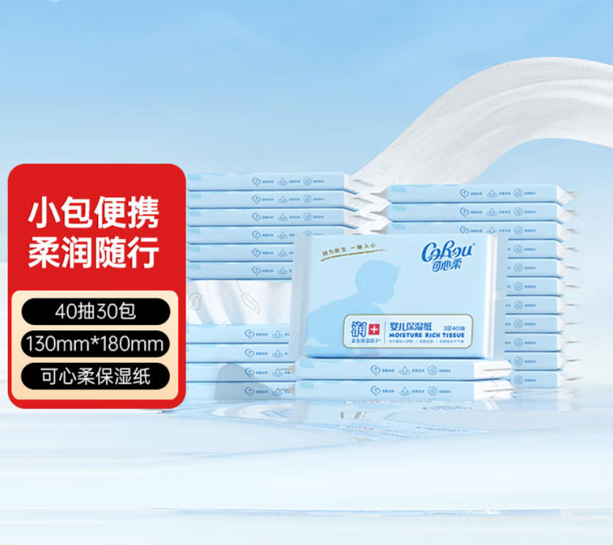云栖漫心 可心柔(COROU)纸巾 云柔巾 乳霜纸 抽纸 3层40抽30包 儿童学生卫生纸餐巾纸小包抽纸