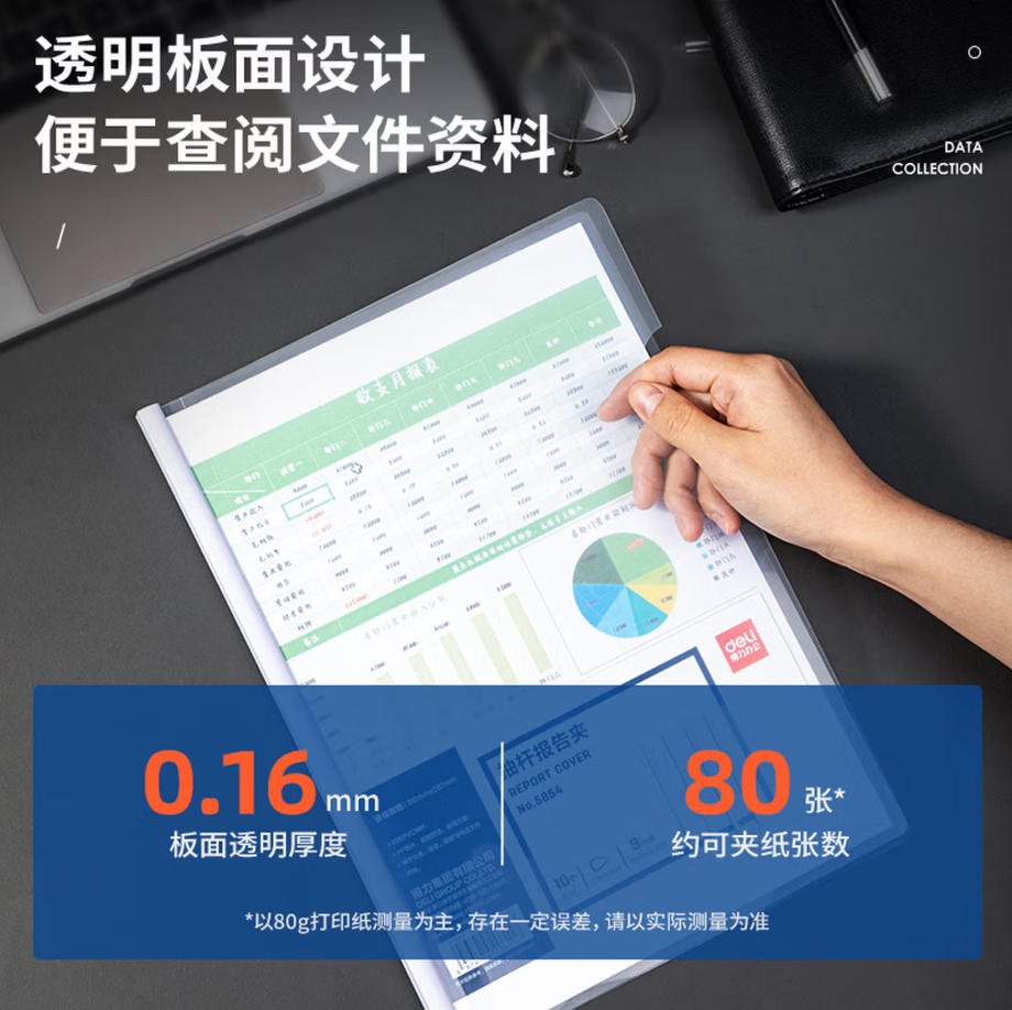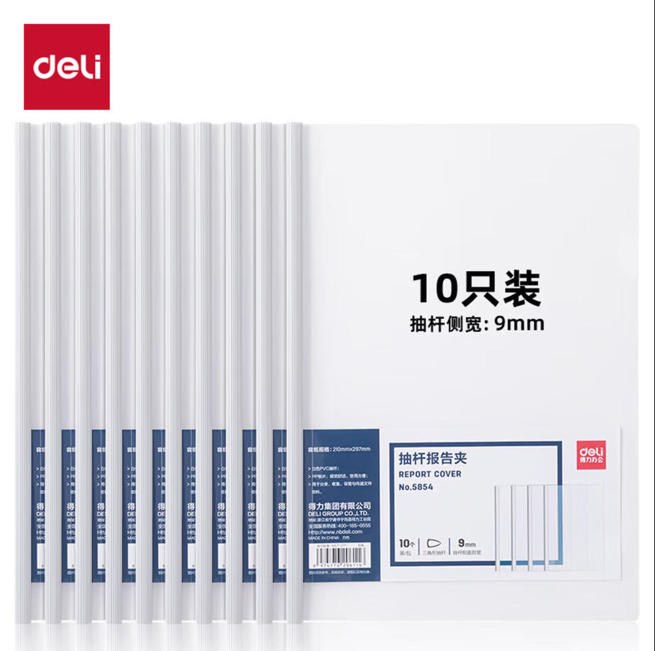 森淼办公 得力(deli)10只A4/9mm透明抽杆文件夹拉杆夹资料夹 学生考试简历报告夹商务会议资料报告收纳 5854白色