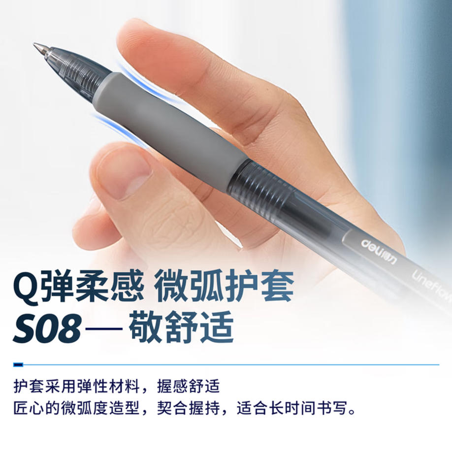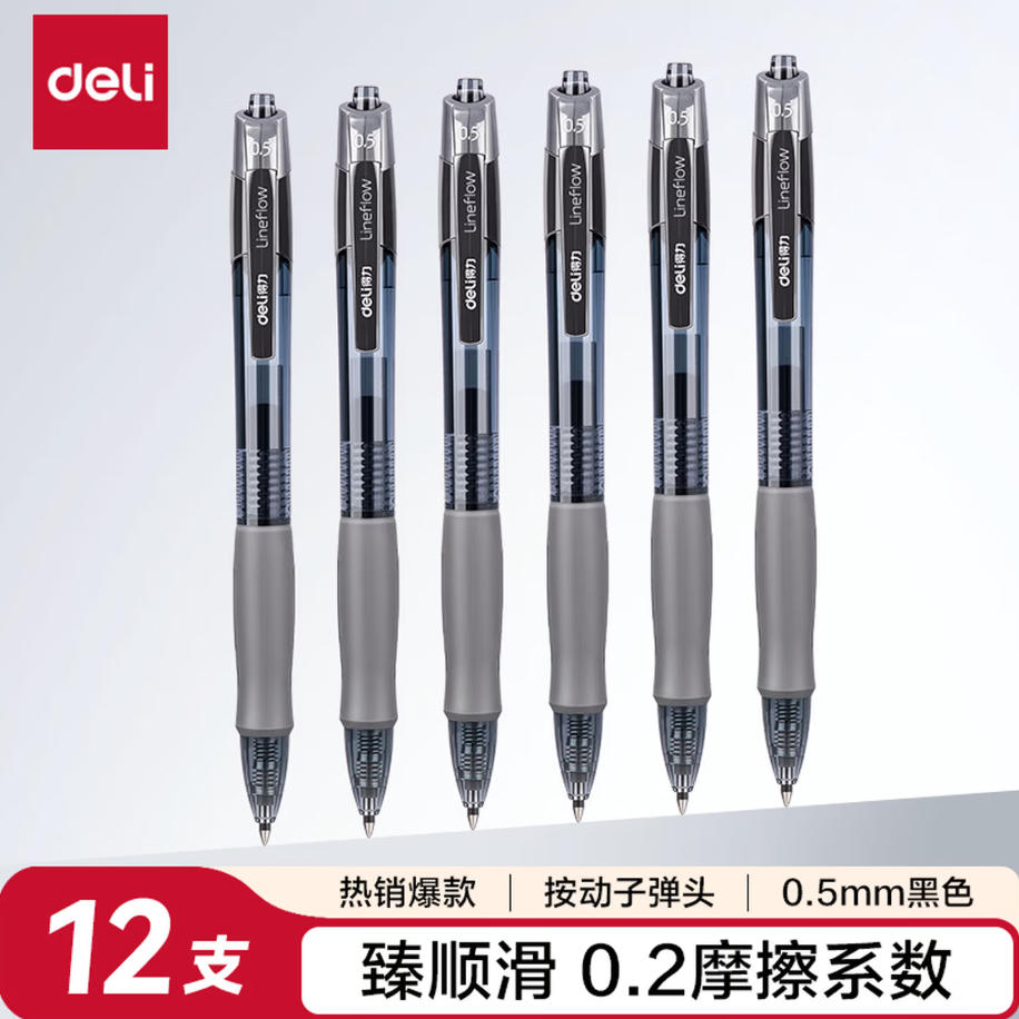 森淼办公 得力 (deli) 中性笔 S08 12支/盒 黑色 0.5mm 按动 签字笔