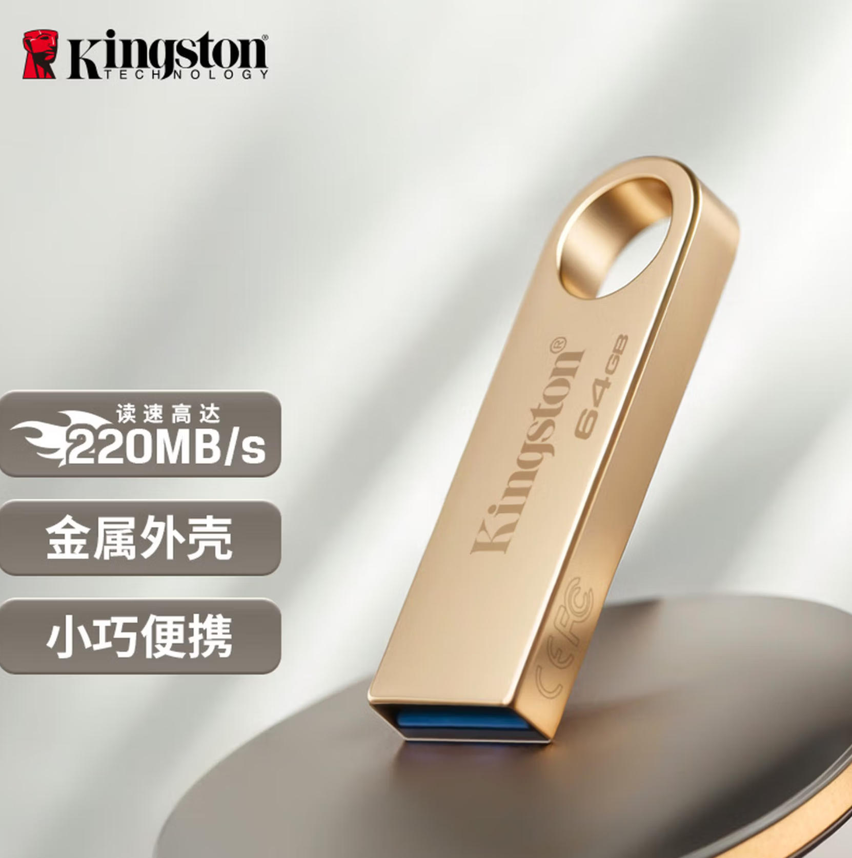 金士顿(Kingston)64GB USB3.2 Gen 1 U盘 DTSE9G3 金属U盘 读速220MB/s 写速100MB/s 学习办公投标电脑车载通用