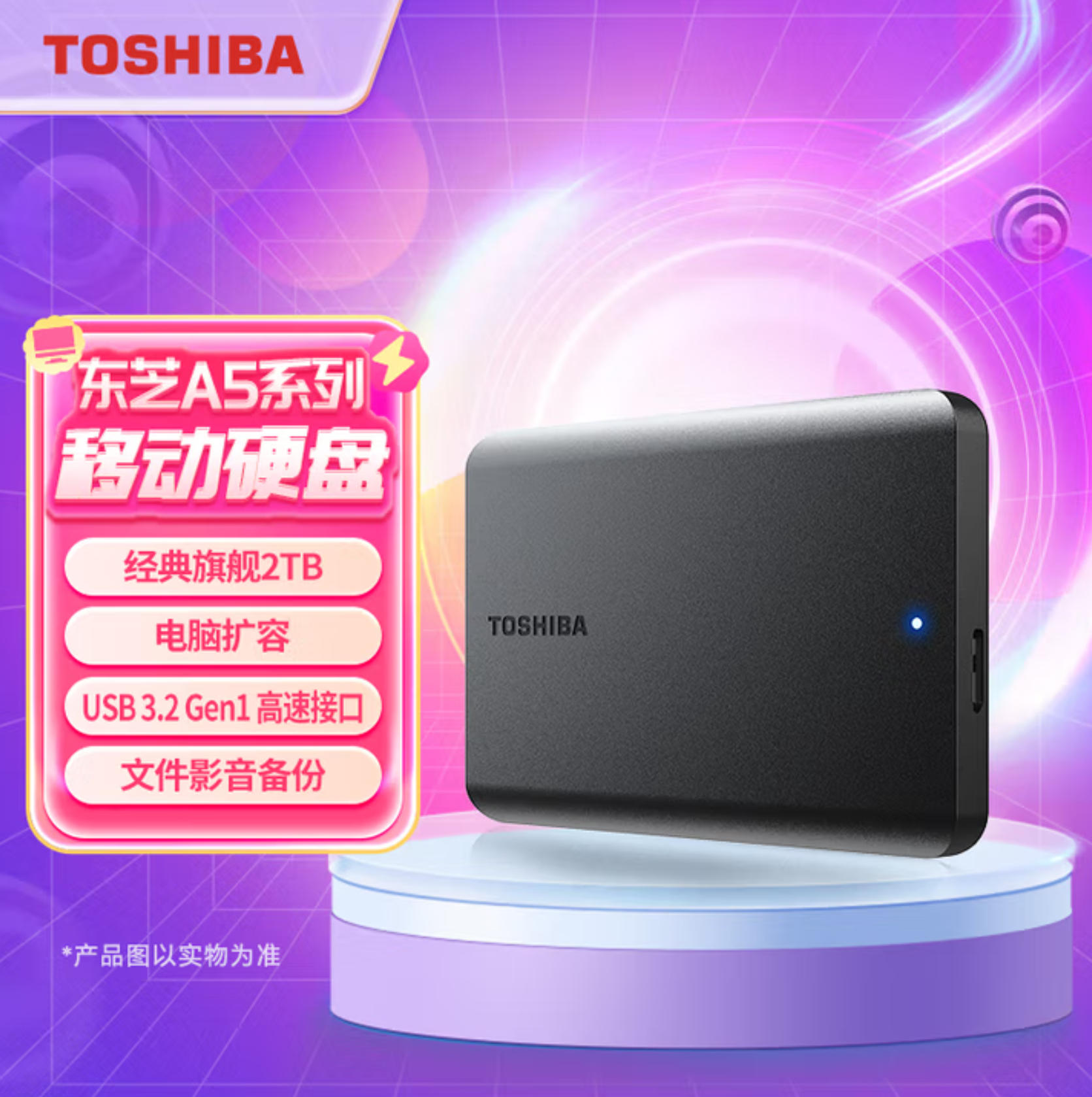 云栖漫心 东芝(TOSHIBA)4TB 移动硬盘 机械 新小黑A5 USB3.2 Gen 1 大容量 兼容Mac 数据存储 轻薄便携