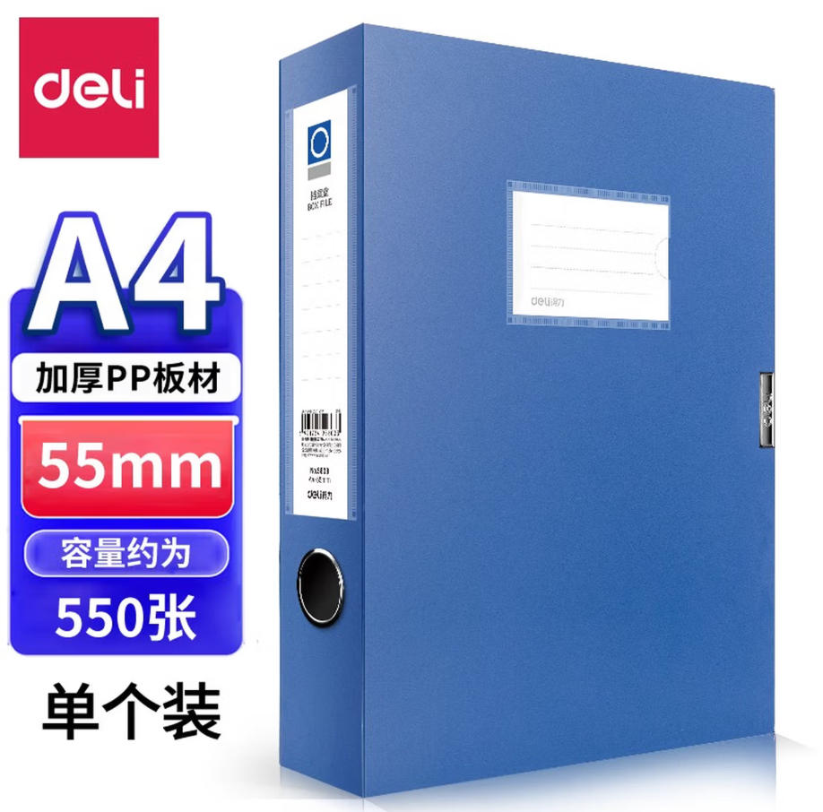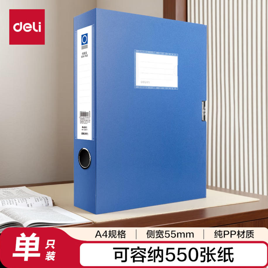 森淼办公 得力(deli)1只 55mm A4文件盒批发 加厚党建档案盒 桌面考试收纳 财会用品 5603蓝色