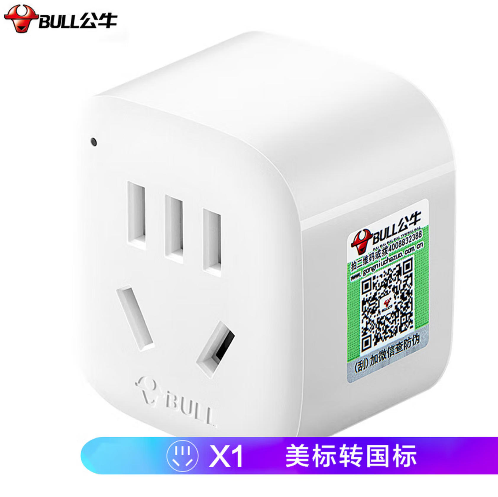 森淼办公 公牛(BULL)美标旅行插座/电源转换器/转换插头 适合美国加拿大日本等国家及中国部分地区 GN-901A无开关