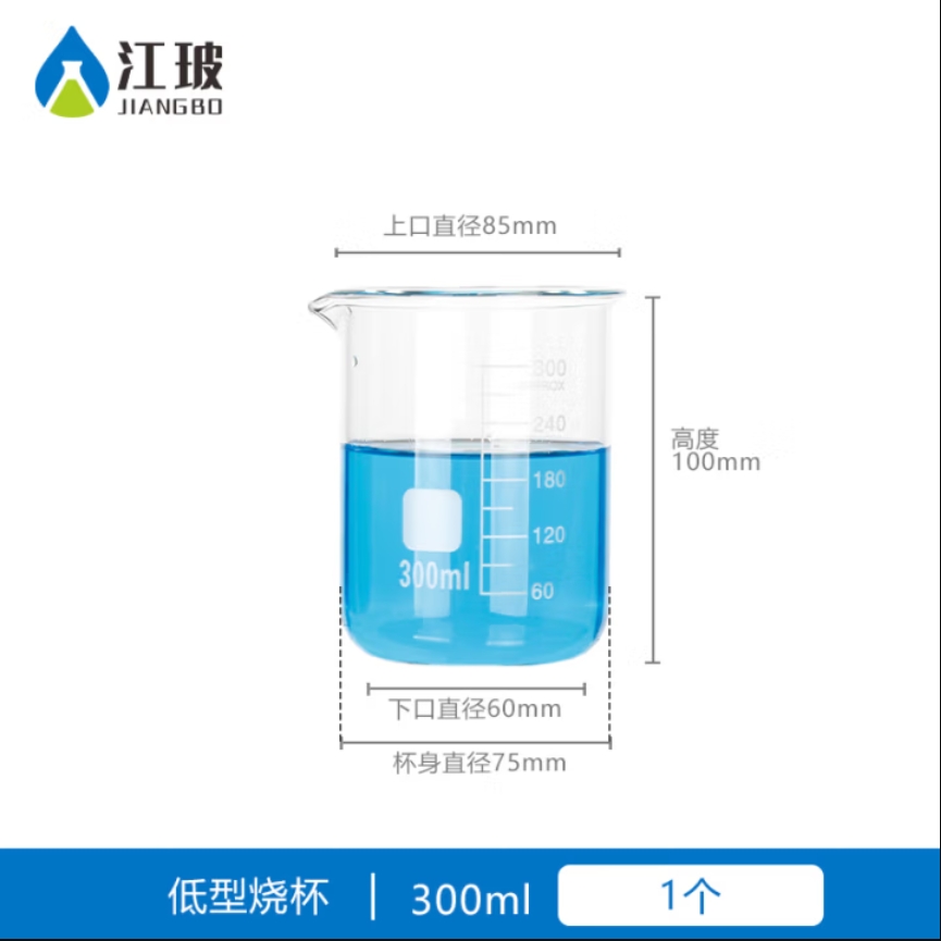 森淼办公 烧杯 实验器材 生物 化学 实验室 中性 耐高温 带刻度 高硼硅玻璃量杯 水杯 大烧杯 低型烧杯 300ML