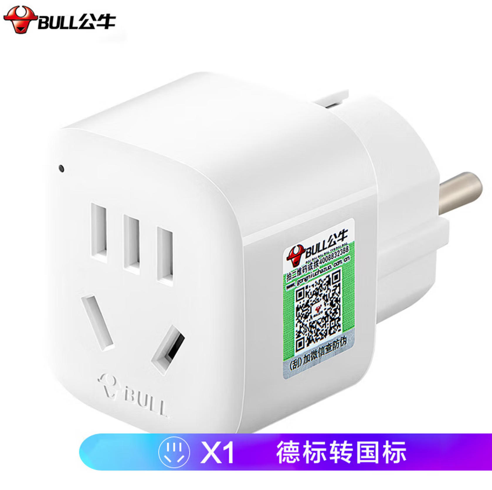 森淼办公 公牛(BULL)德标旅行插座/电源转换器/转换插头 适合国外使用(德国 西班牙 法国 韩国 荷兰等)无开关GN-901G