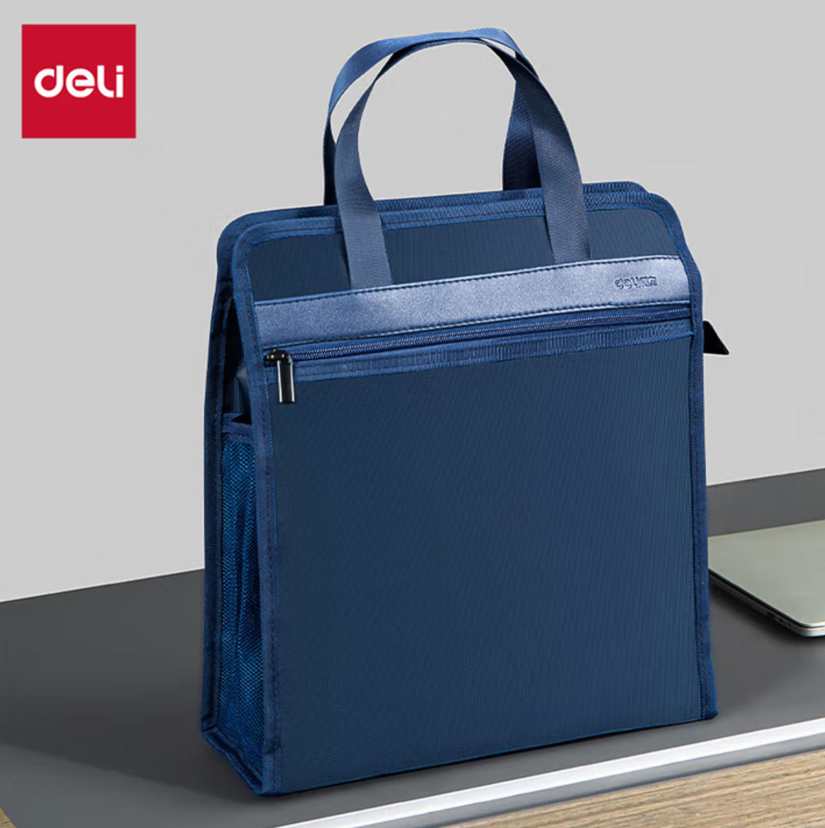 云栖漫心 得力 (deli) 加厚 竖式 立体 办公 手提袋 会议包 事务包 文件包 商务拉链袋 公文包 蓝色 便携 63760