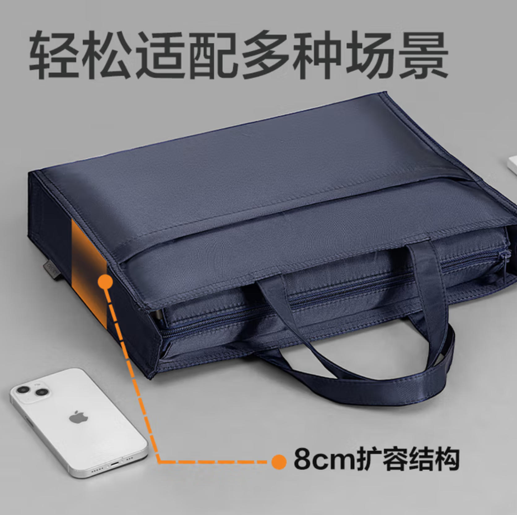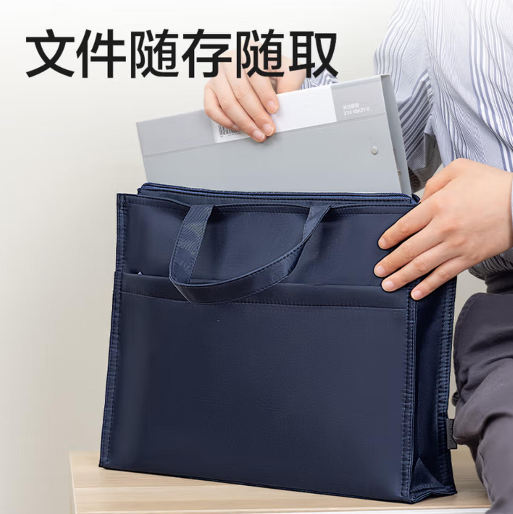 云栖漫心 得力 (deli) 办公 手提袋 会议包 事务包 文件包 加厚大容量商务拉链袋公文包 缎面材质防水耐磨 蓝色 63762
