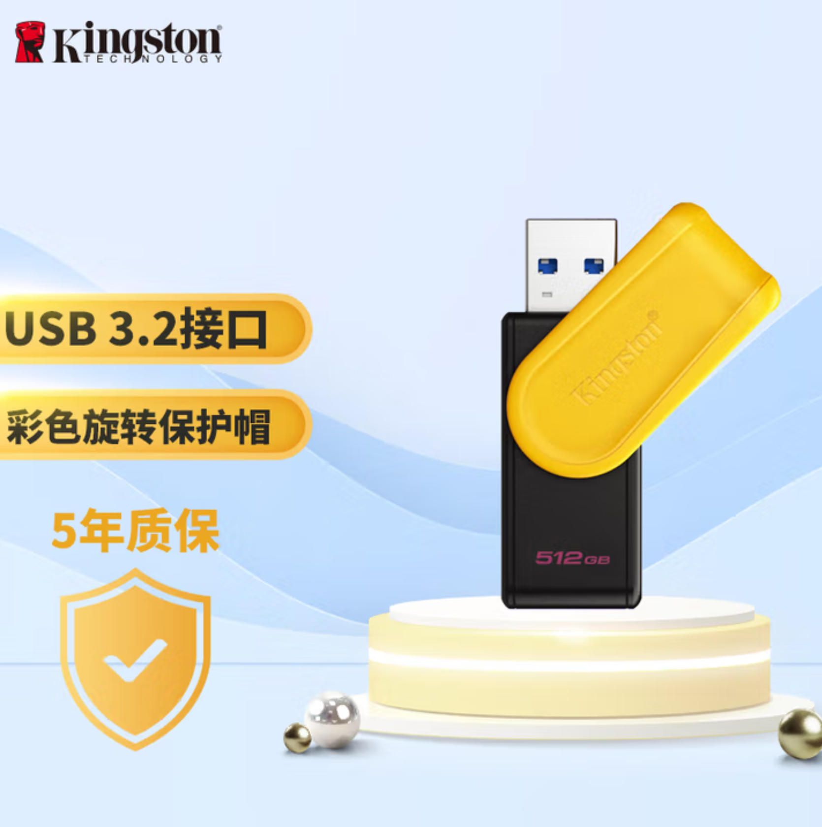 云栖漫心 金士顿(Kingston)512GB USB3.2 Gen 1 U盘 DTXS 缤纷多彩旋转U盘 时尚便携 学习办公投标电脑通用
