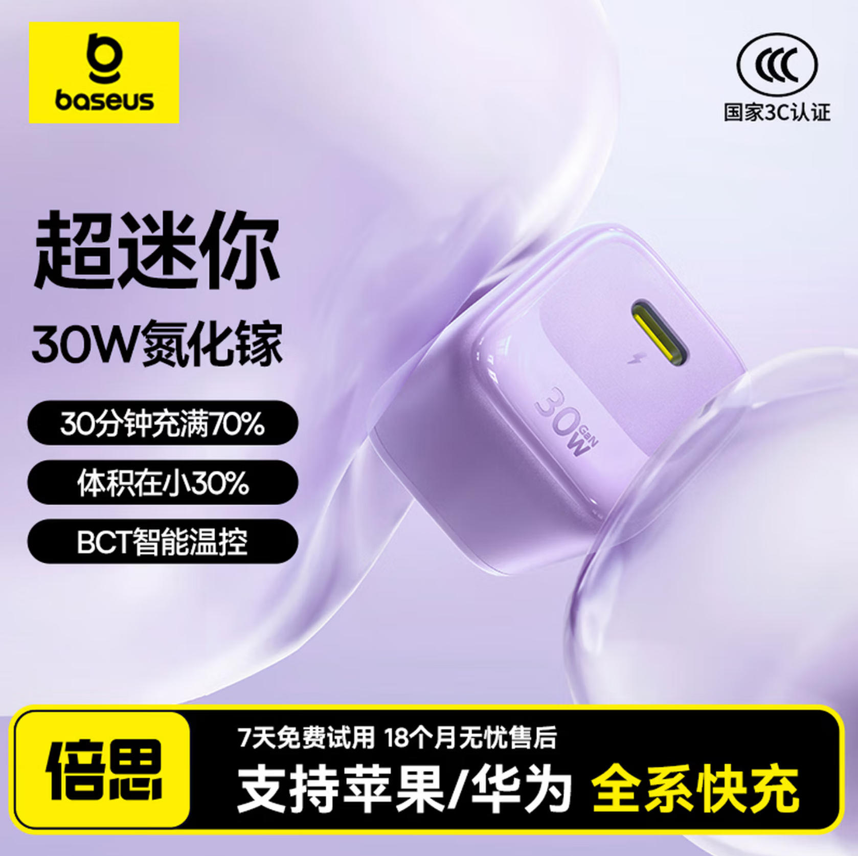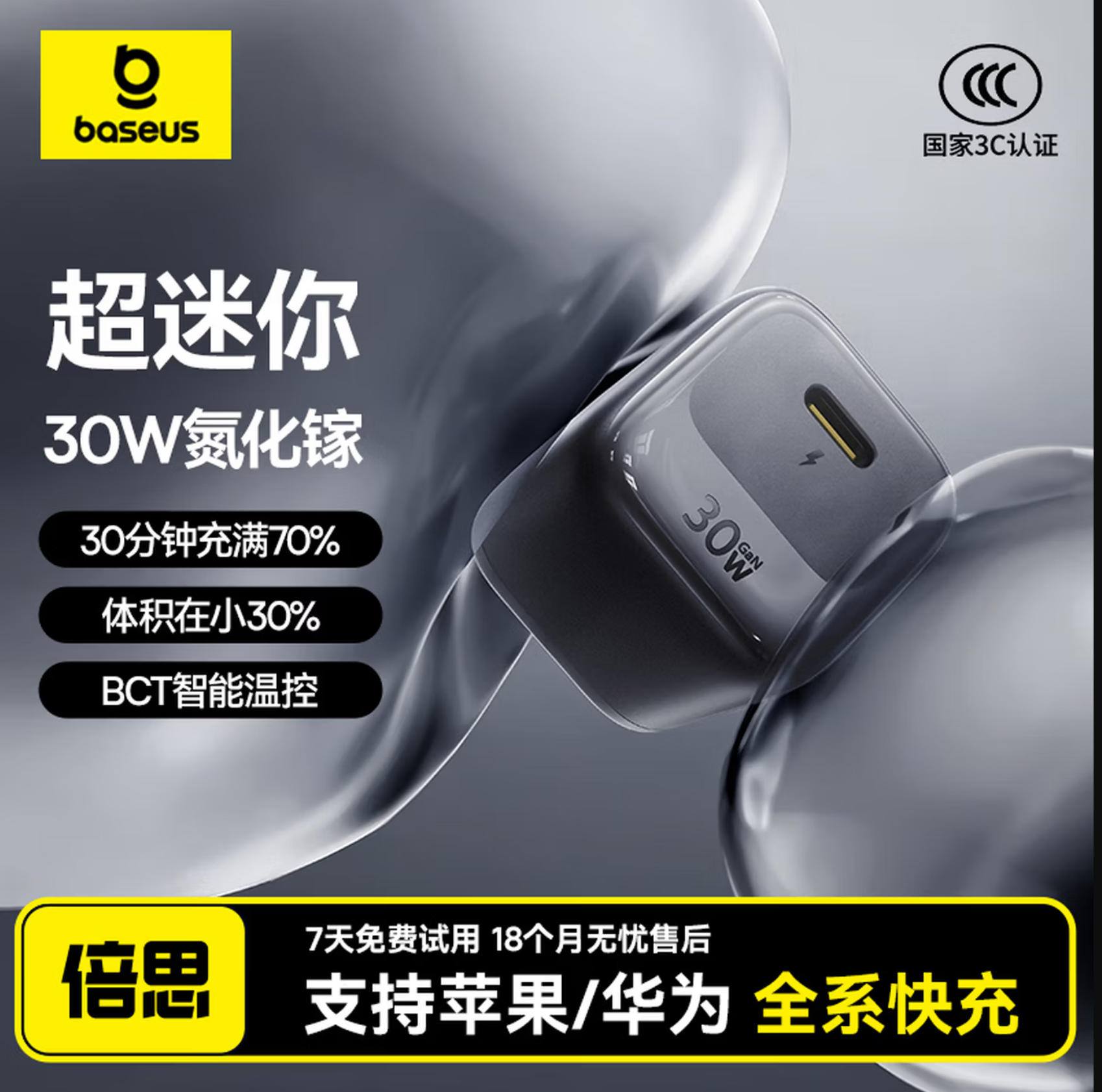 森淼办公 倍思 小冰充 30W氮化镓 充电器 适用苹果17充电头快充iPhone16promax15/14/13手机iPad插头 白