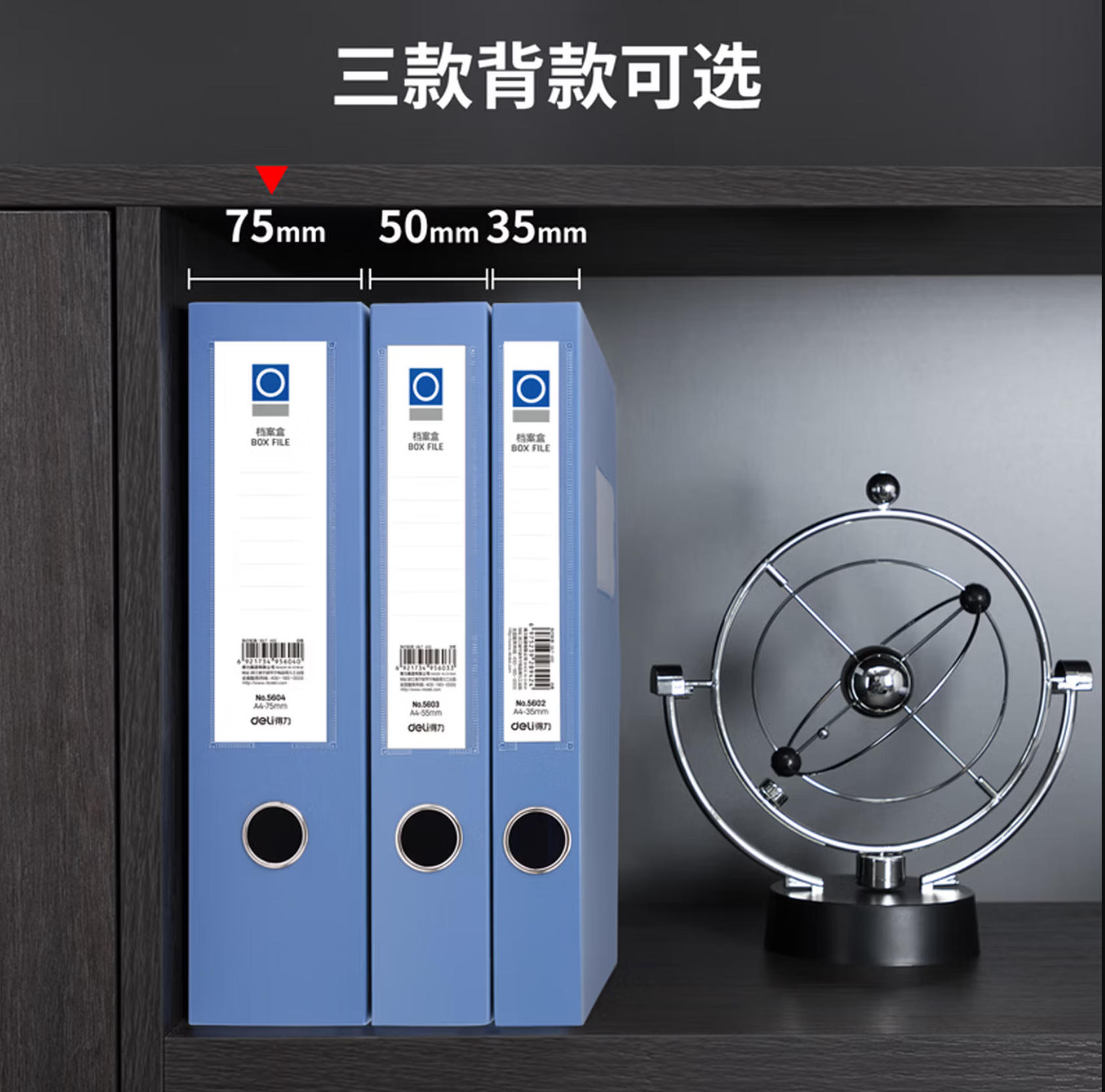 森淼办公 得力(deli) 加宽 75mm A4 文件盒 加厚党建 档案盒 桌面 考试 收纳 财会用品 5604