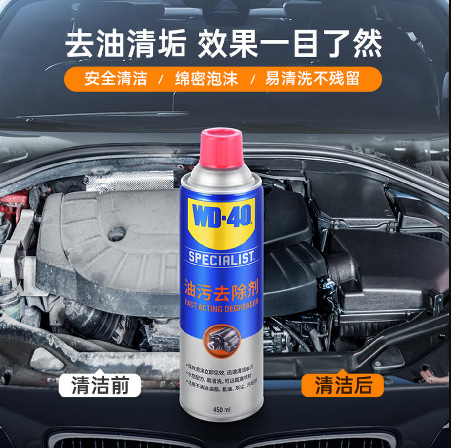 莱英办公 WD-40 汽车发动机舱清洗剂 wd40机头水 油污去除 引擎灰尘油 泥泡沫清洁剂