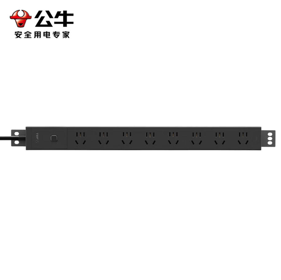 公牛(BULL)PDU桌面过载超功率保护桌下电竞机柜插座/插线板/插排/排插 8位总控开关1.8米规格 GNE-P108E黑色