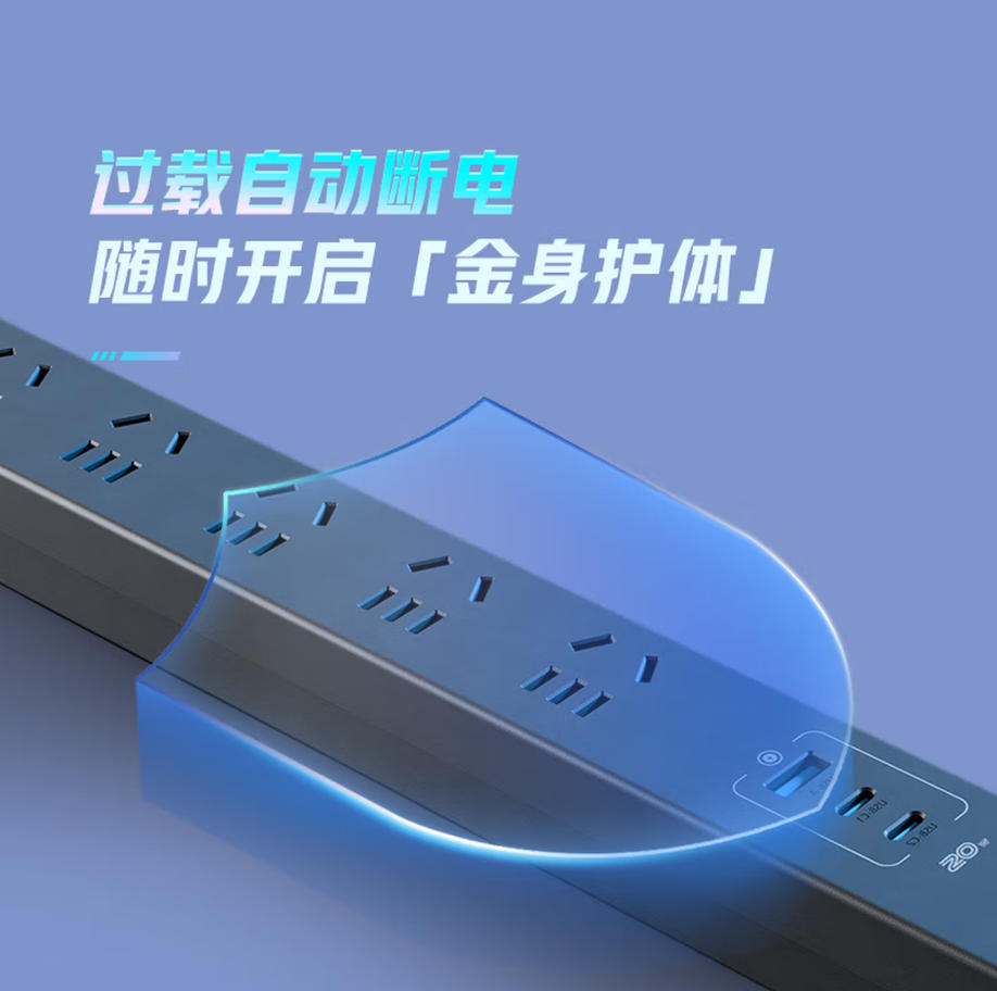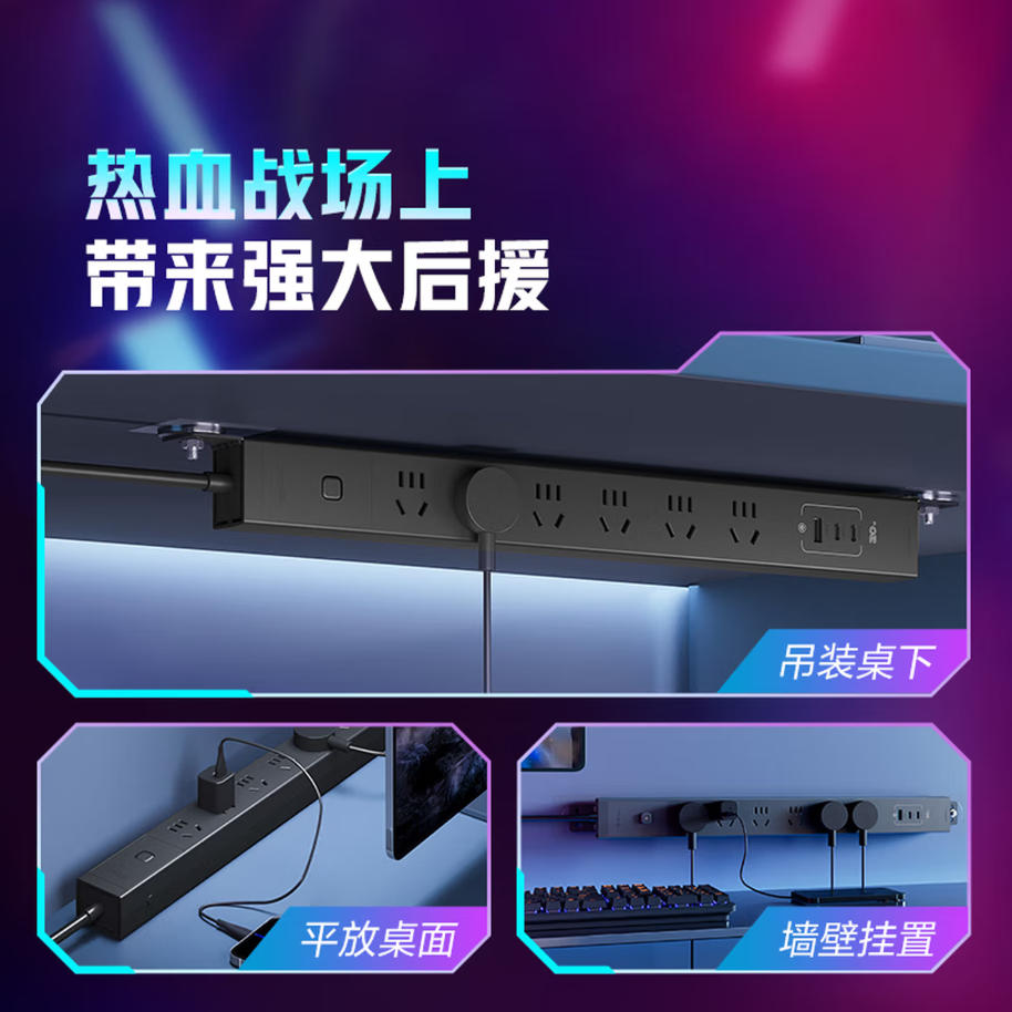 公牛(BULL)20W快充PDU桌面过载超功率保护桌下电竞机柜插座/插线板/插排/排插 总控开关6位+USB 1.8米规格 GNE-P106EQ20