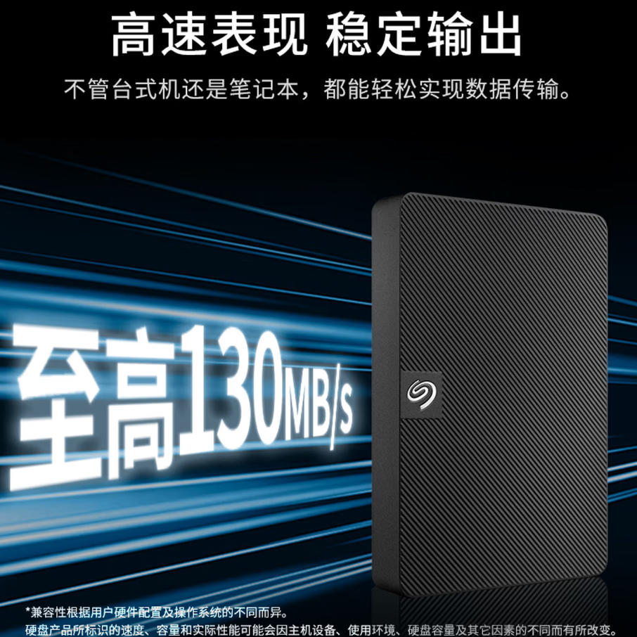 云栖漫心 希捷(SEAGATE)移动硬盘 1TB USB3.0高速 希捷睿翼 2.5英寸 机械硬盘 黑 便携外接存储办公学习 数据恢复服务