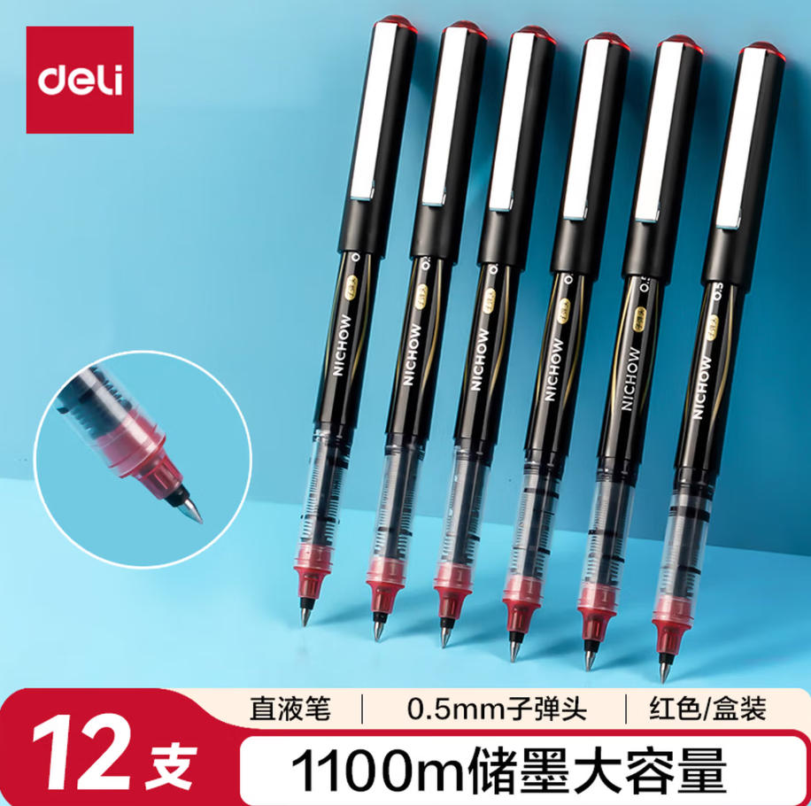 云栖漫心 得力 (deli) 直液笔 签字笔 0.5mm子弹头 办公商务 中性笔 水笔 走珠笔 红色 12支/盒 S656-Z1