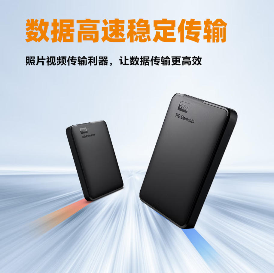云栖漫心 西部数据(WD)移动硬盘4TB USB3.0 元素系列 2.5英寸 机械硬盘 笔记本电脑外接 外置扩容备份 大容量家庭存储