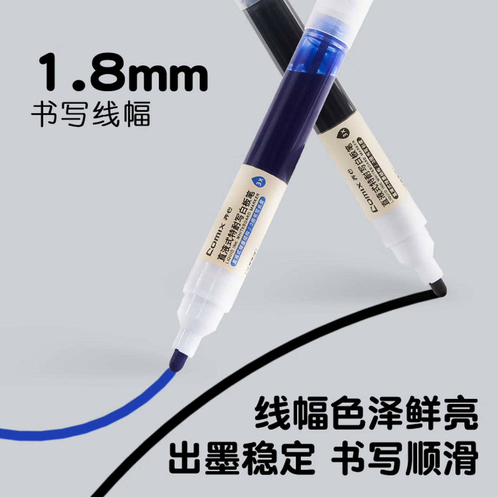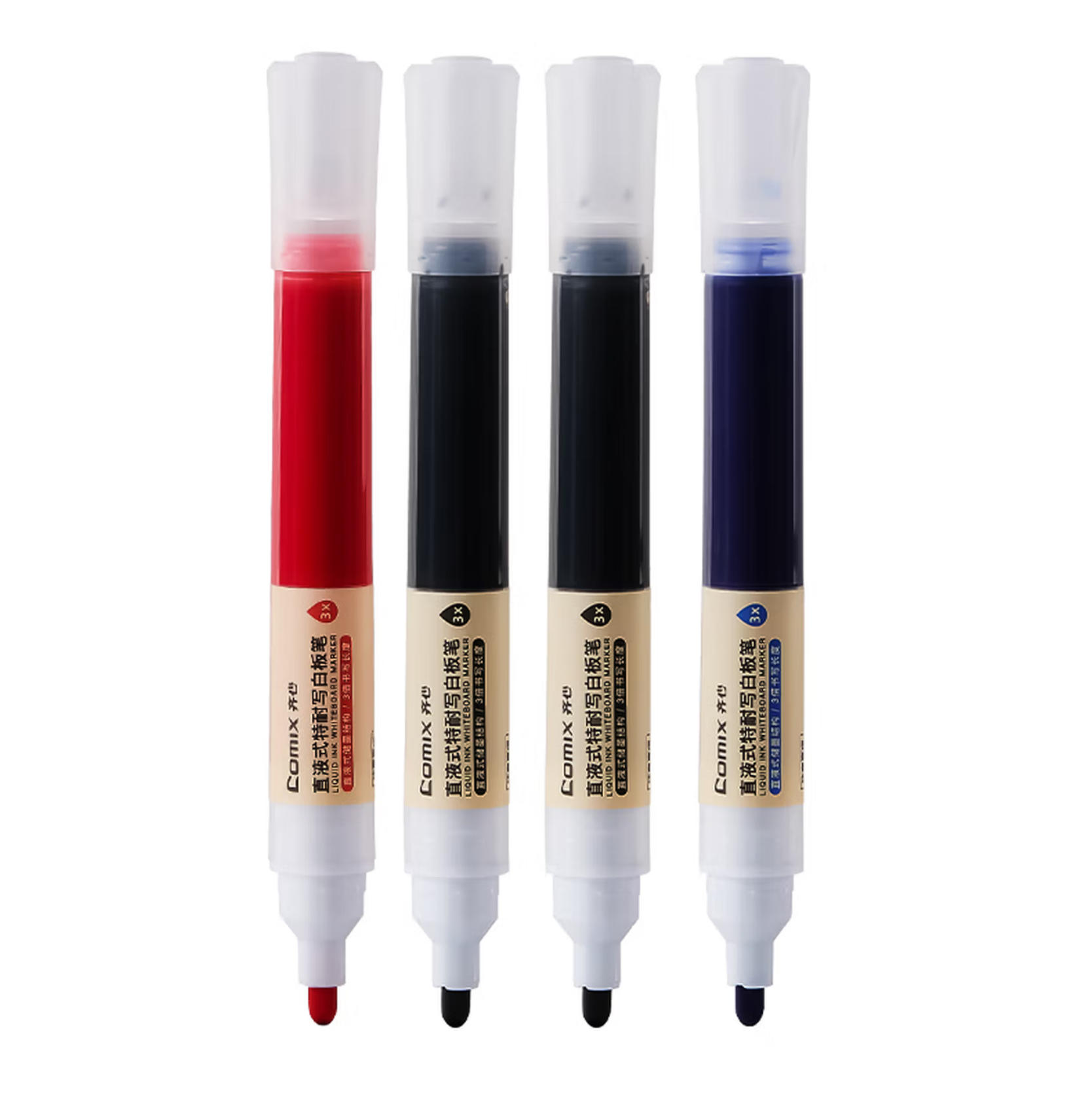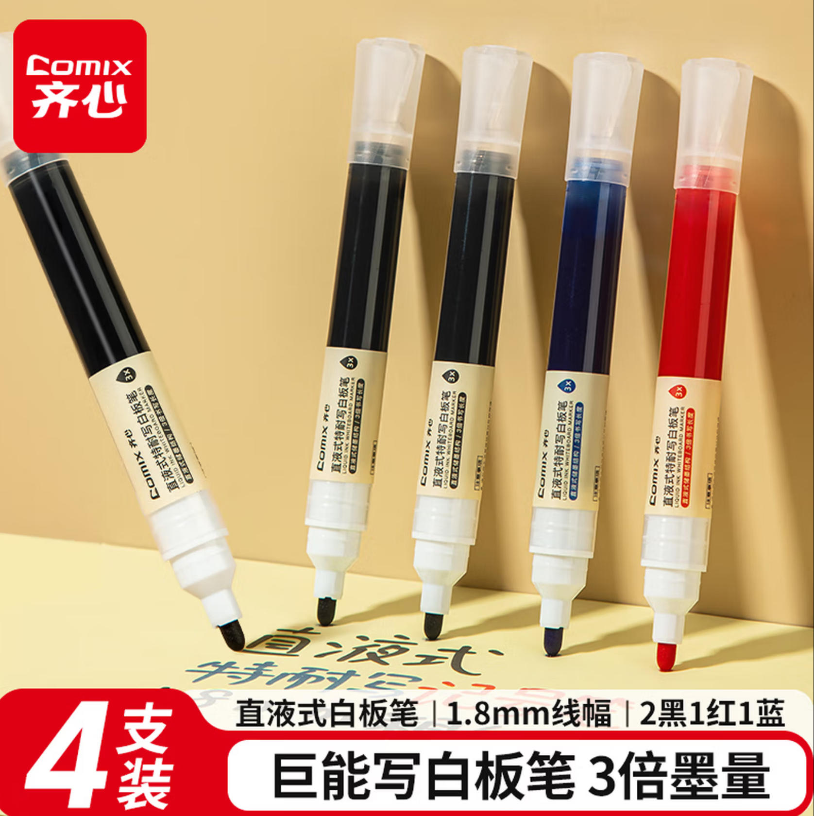 云栖漫心 齐心 特耐写 直液式 白板笔 1.8mm 可擦 易擦 无痕 办公会议 实验数据 彩色白板笔 3色混装 4支/盒 文具 EW716
