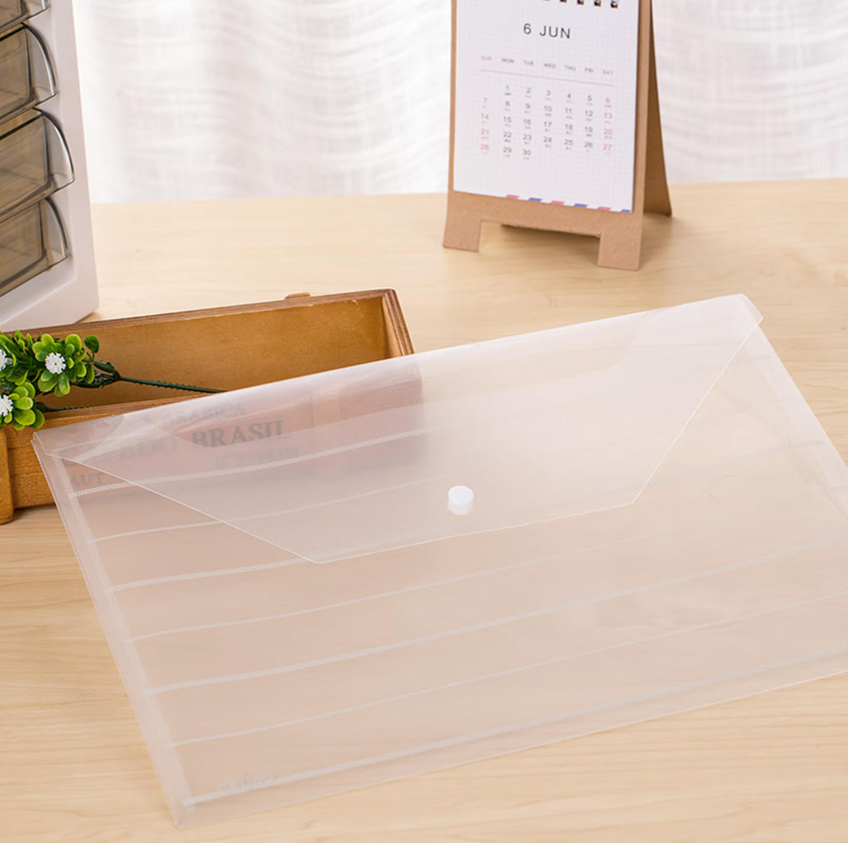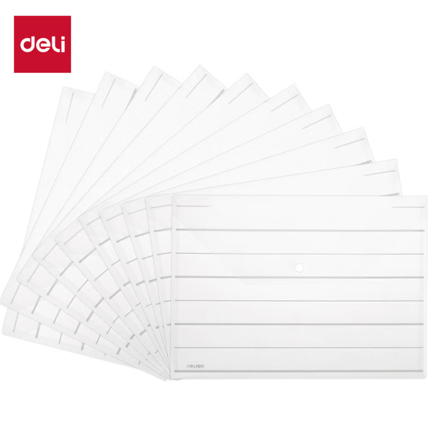 森淼办公 得力(deli)(deli)10只A4条纹透明文件袋 按扣资料袋 塑料档案袋 文件保护 票据试卷收纳袋 学习用品 8313