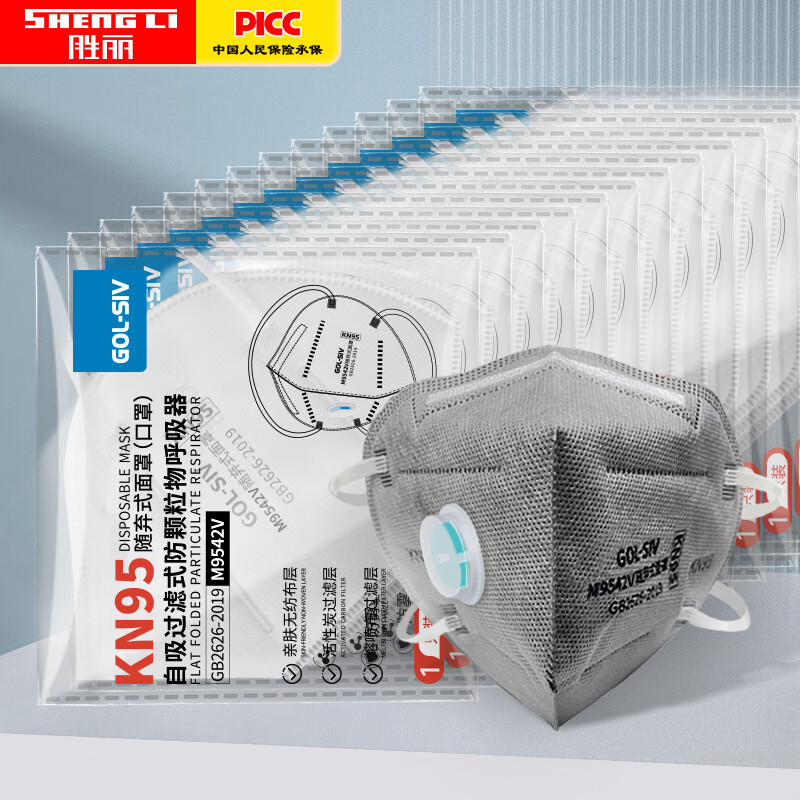胜丽 (GOL-SIV) M9542 KN95活性炭防护口罩 头戴独立装 50只/盒