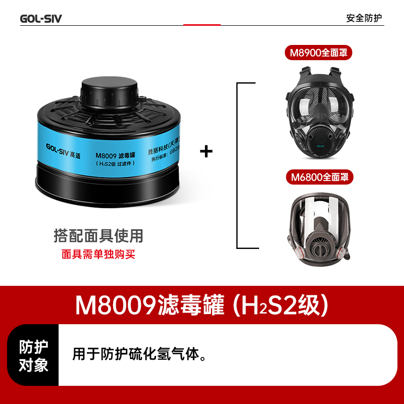 胜丽(SHENGLI) H2S类2级滤毒罐搭配防毒面具全面罩防硫化氢M8009 1个装