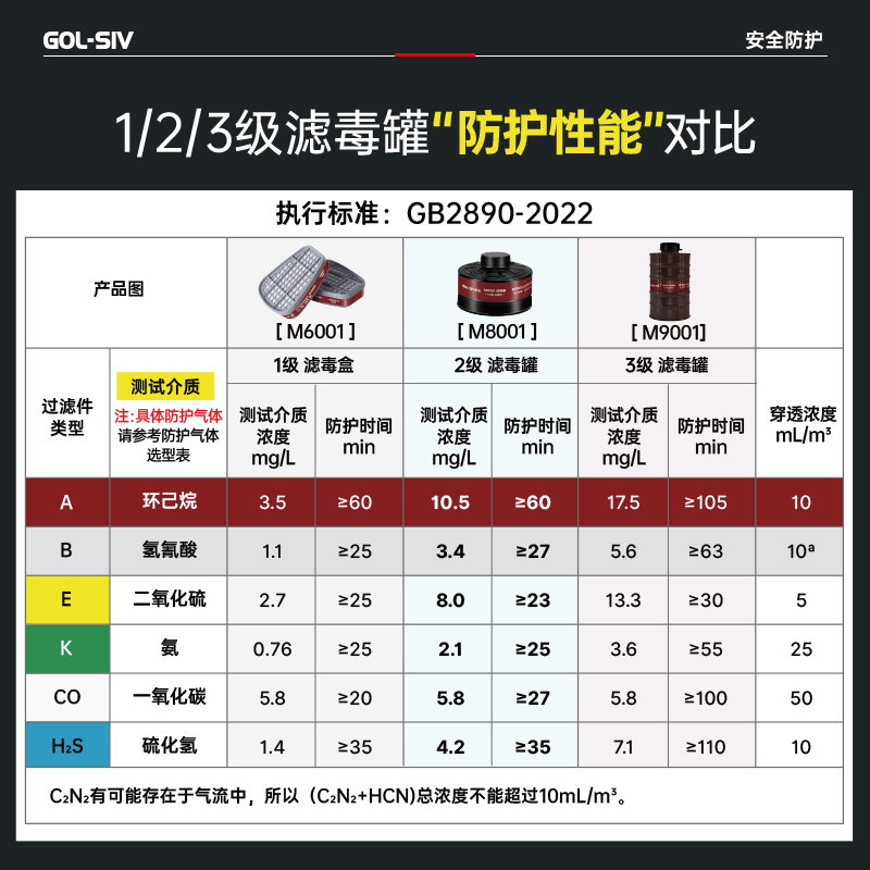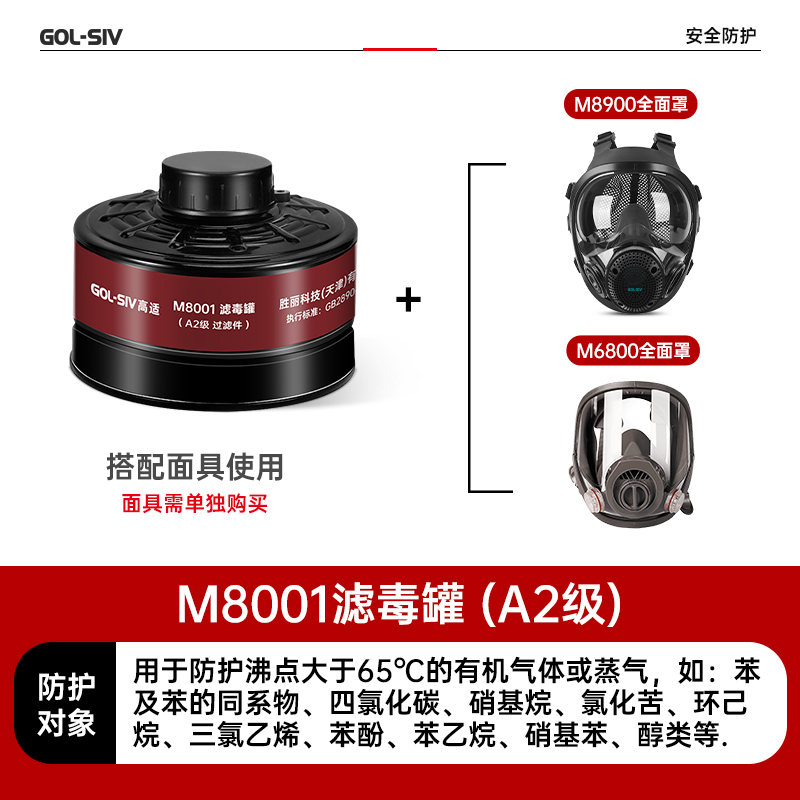 胜丽 GOL-SIV® A类2级滤毒罐搭配防毒面具全面罩防有机气体和蒸气 M8001 1个装