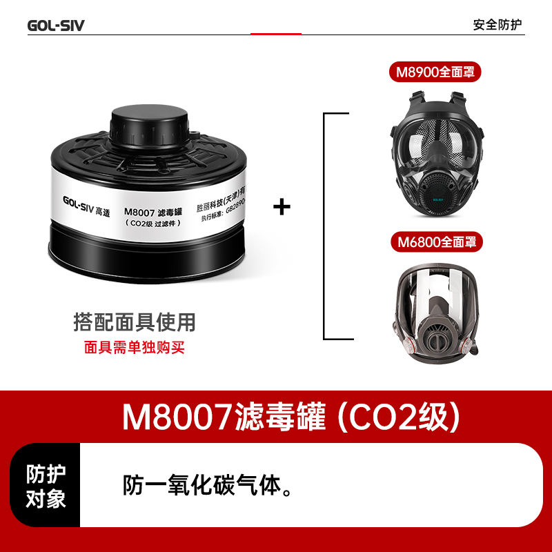 胜丽 GOL-SIV® CO类2级滤毒罐搭配防毒面具全面罩防一氧化碳气体M8007 1个装