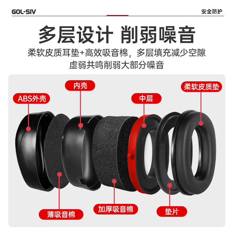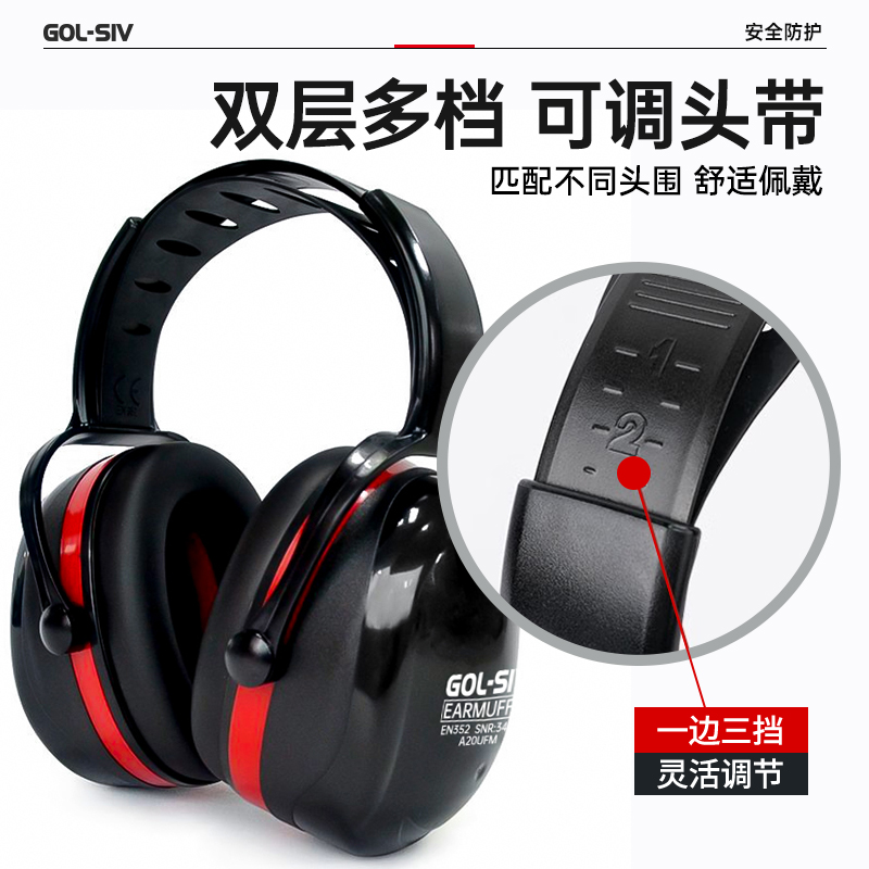 胜丽 隔音耳罩不压耳降噪防噪音静音睡眠学习工业降噪防护耳罩降噪34分贝 头戴式黑红色A20UFM 1副