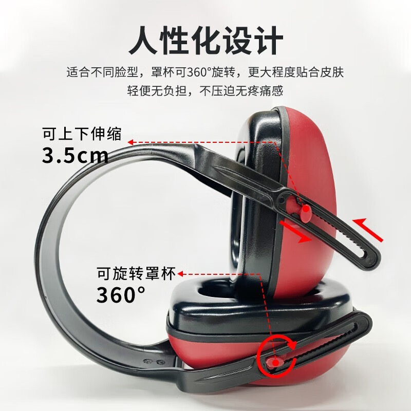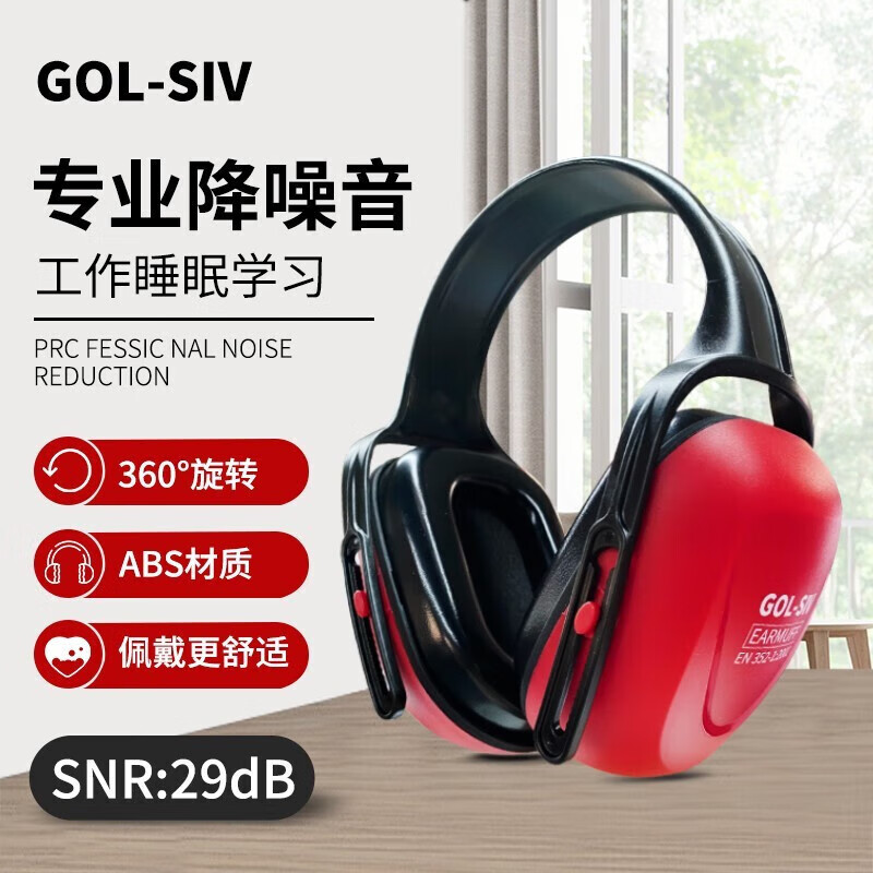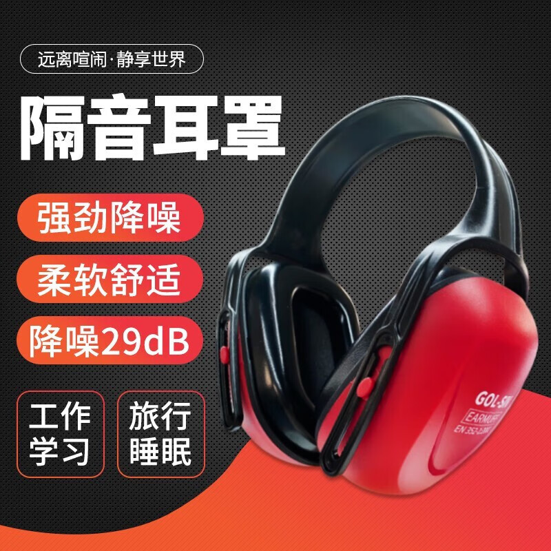 胜丽 隔音耳罩防鞭炮烟花声降噪睡觉防噪音呼噜睡眠用 工业降噪29分贝 头戴式红色A20UEM耳罩 1副