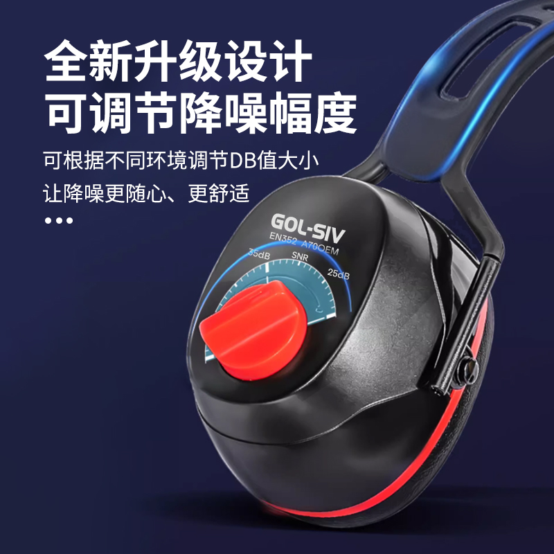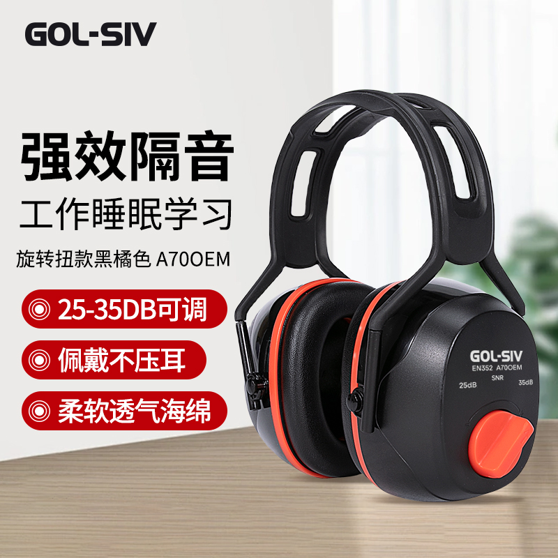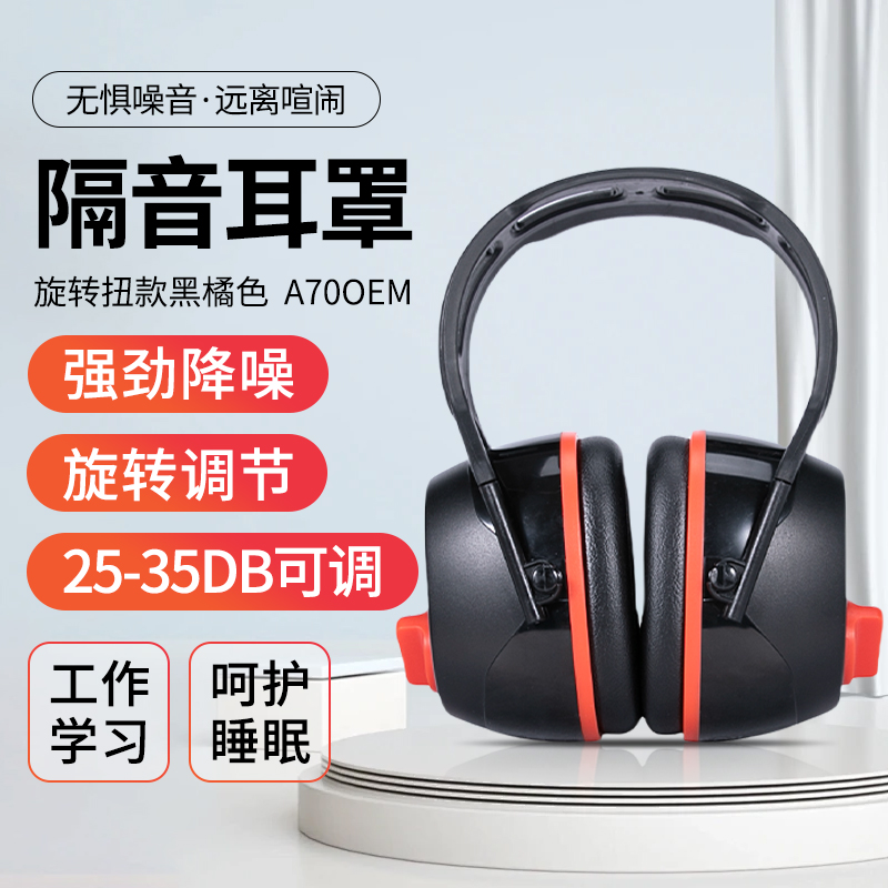 胜丽 隔音耳罩降噪防噪音静音睡眠专用工业降噪耳罩25-35分贝 可调节黑橘色A70OEM 1副