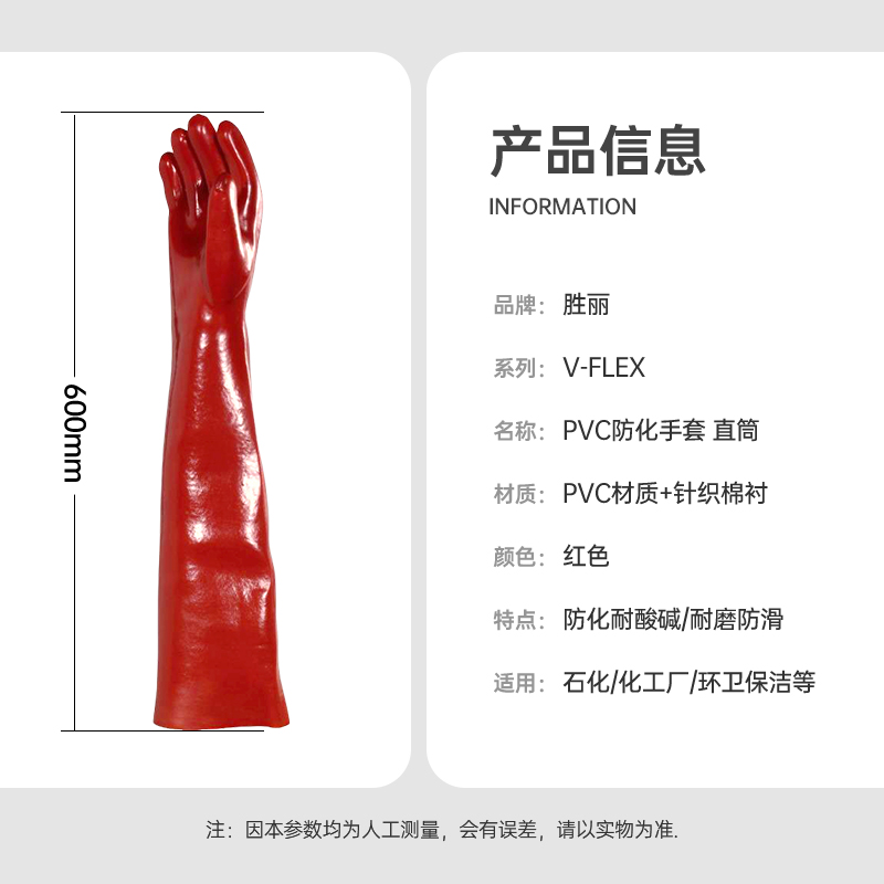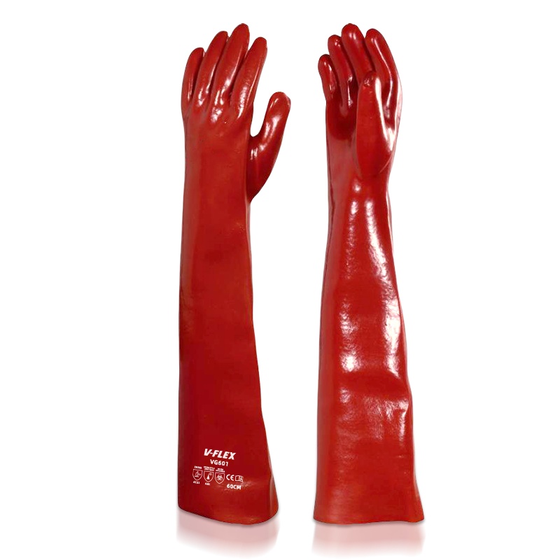胜丽 V-FLEX® VG601工业级PVC防油手套耐酸碱手套加长加厚防腐蚀防化手套红色60cm