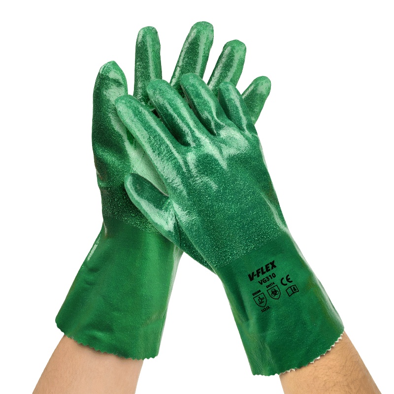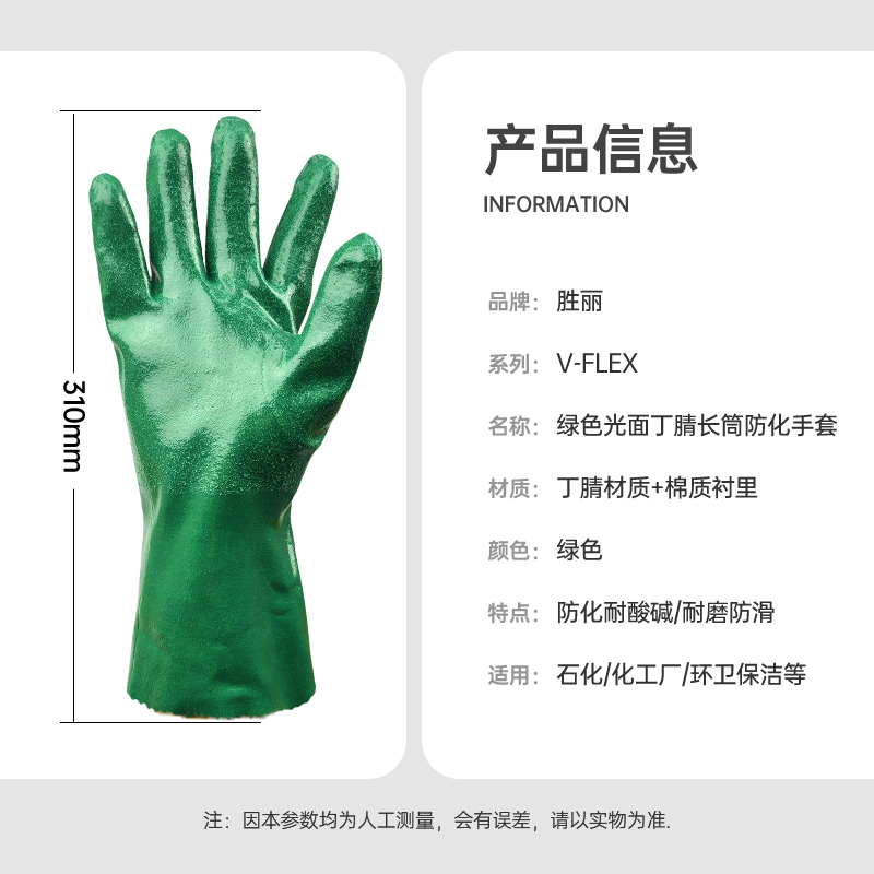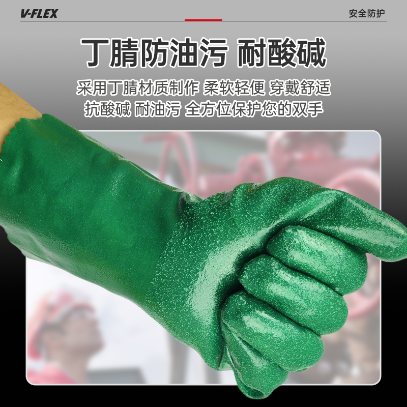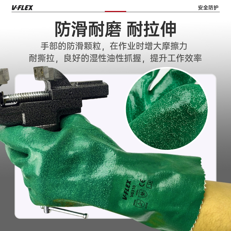 胜丽 V-FLEX® VG310工业防油耐酸碱丁腈防化手套耐磨防滑防水石油化工实验室抗腐蚀手套 绿色31CM 1副