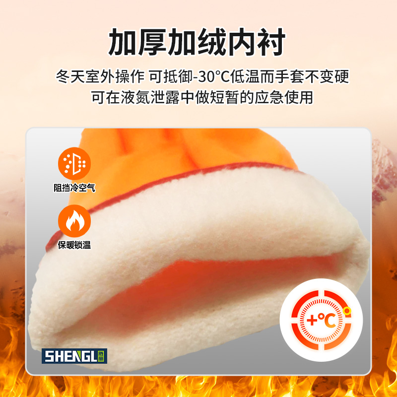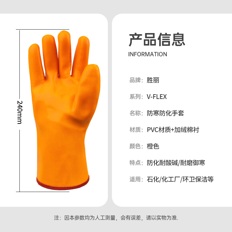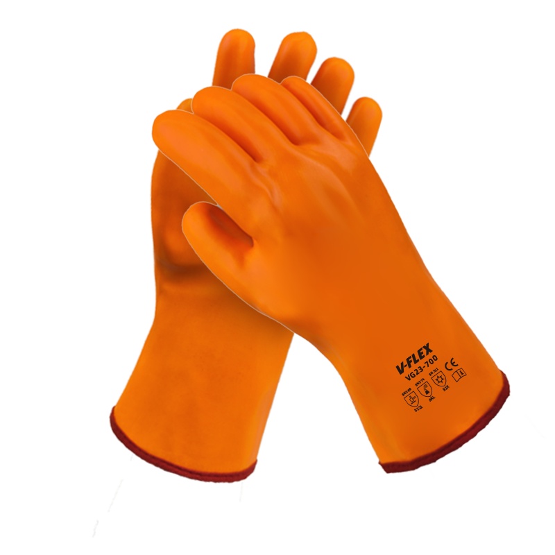 胜丽 V-FLEX® VG23-700 pvc防寒防化耐酸碱手套 冷库作业 零下30度防冻手套橘色24CM 1副