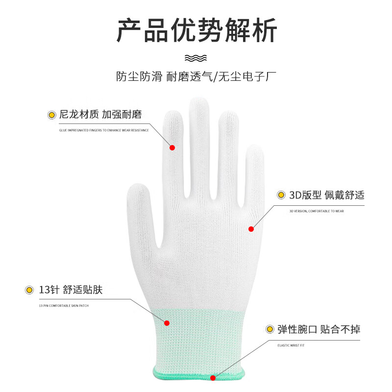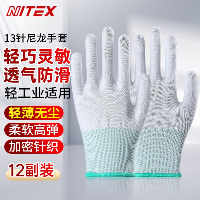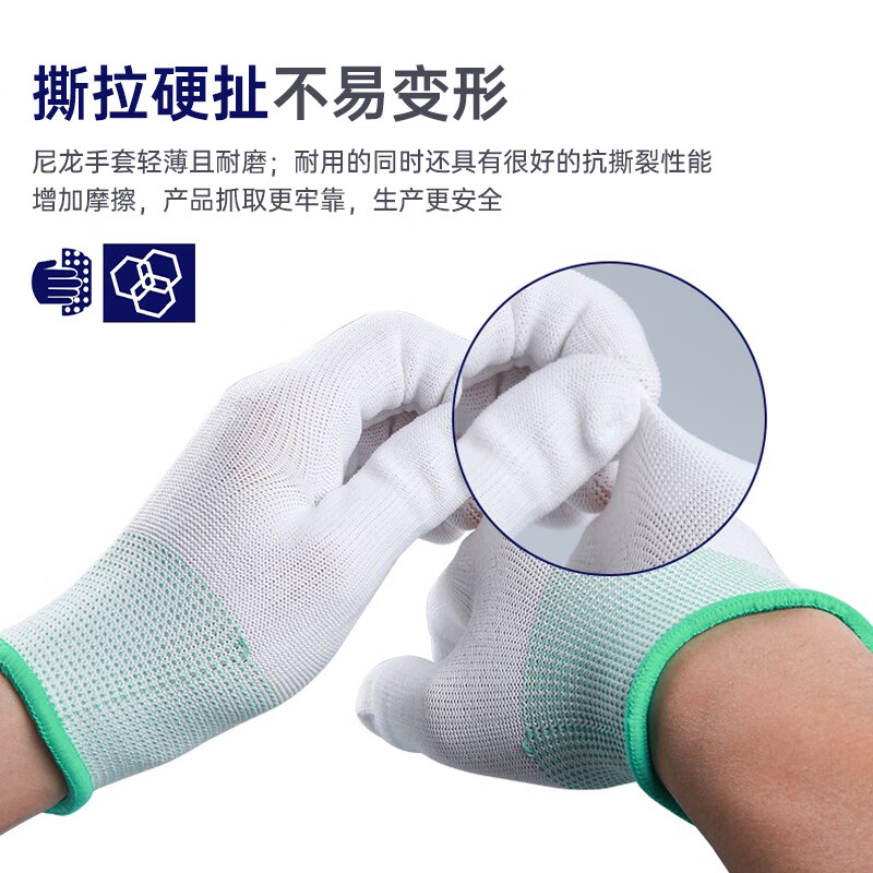 胜丽劳保手套尼龙白手套13针防滑耐磨电子厂GX13E01 M码 12副