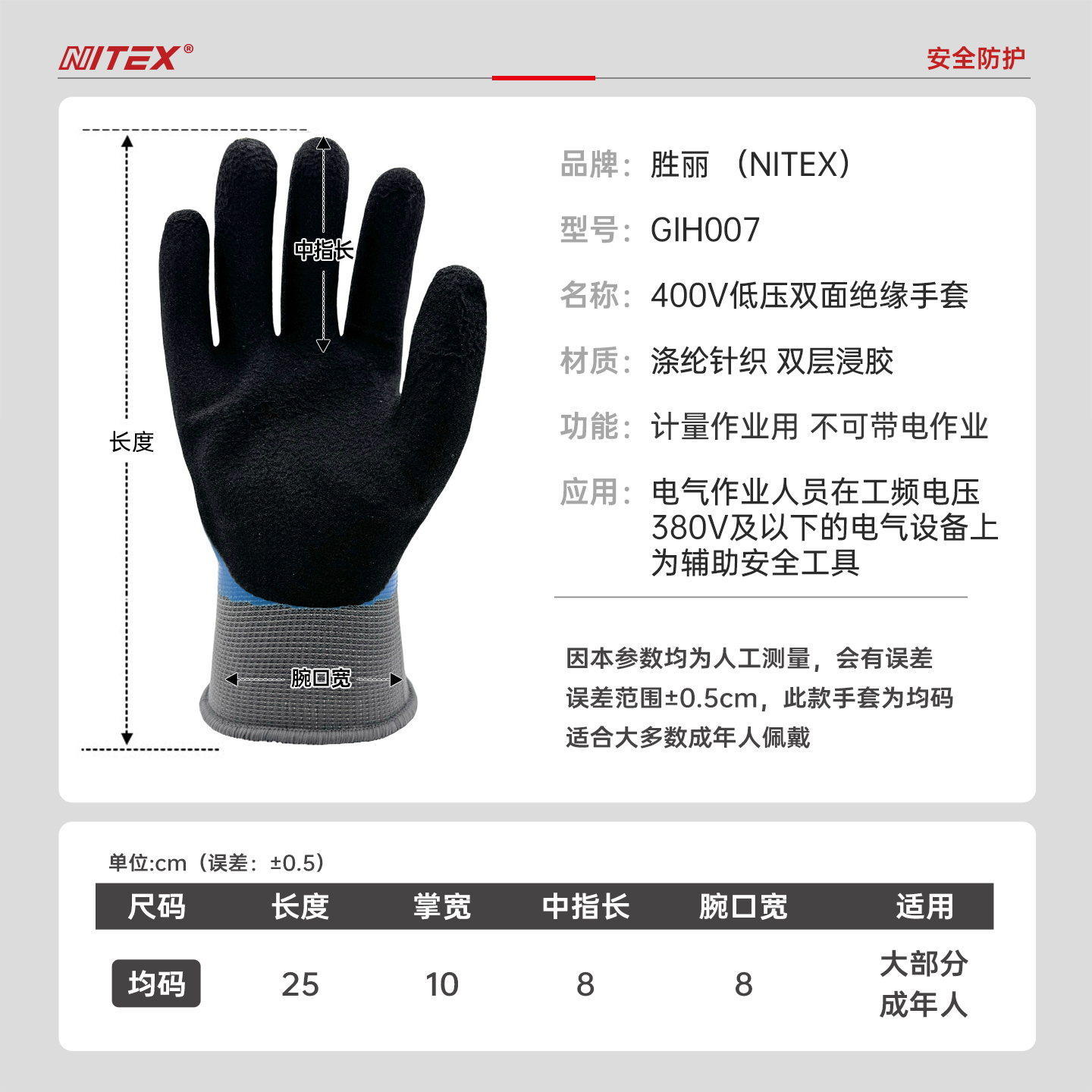 胜丽(NITEX GIH007 绝缘手套 测试电压400V 最大使用电压380V 不可直接带电作业 出厂开始每半年需要进行一次检测
