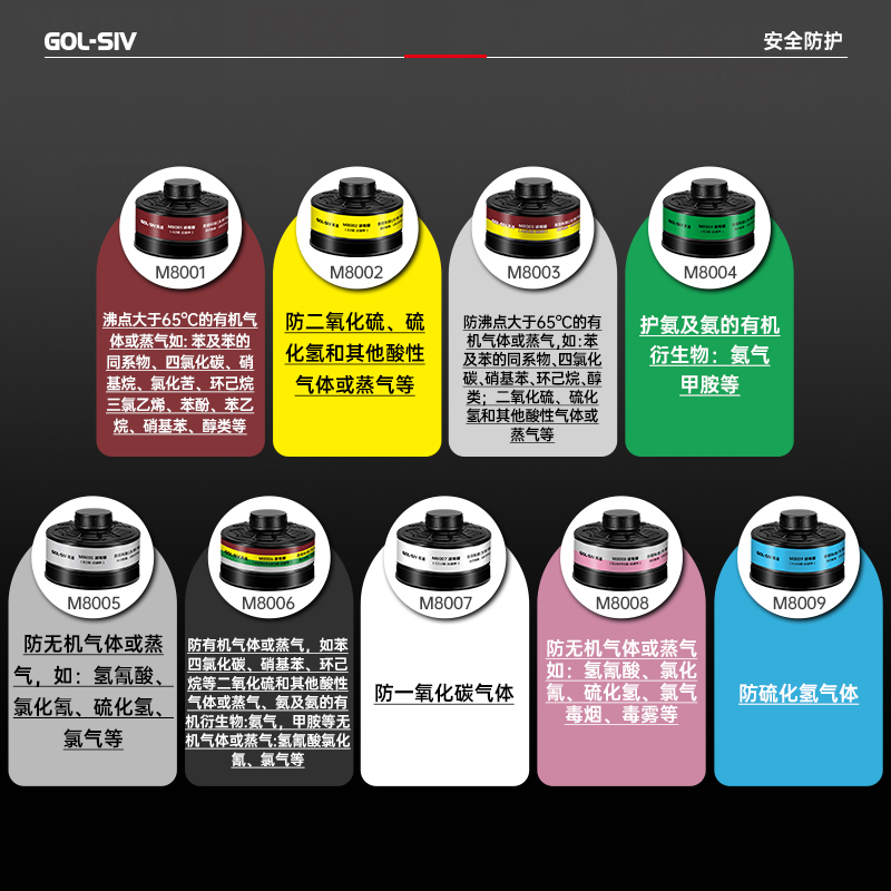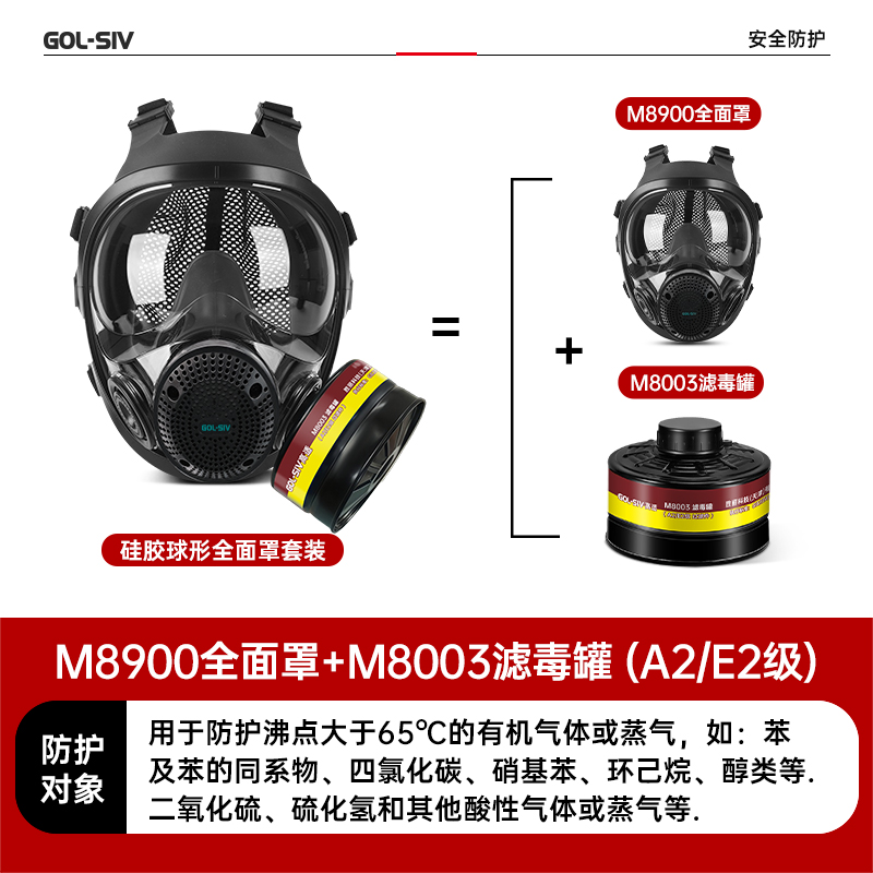 胜丽 (GOL-SIV) 2级滤毒罐防毒面具全面罩A类/E类套装防有机气体及蒸气 M8900+M8003