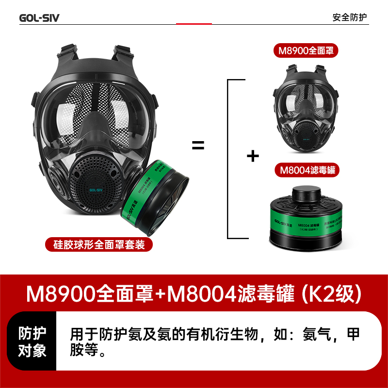 胜丽 (GOL-SIV)2级滤毒罐防毒面具全面罩K类套装防氨及氨的衍生物 M8900+M8004