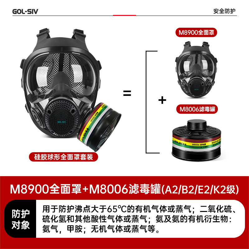 胜丽 (GOL-SIV) 2级滤毒罐防毒面具全面罩A/B/E/K类套装防有机/无机/酸性等 M8900+M8006