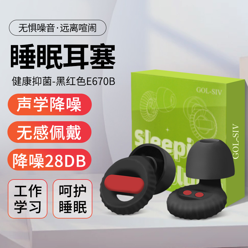 胜丽防噪音睡眠耳塞降噪28db工作学习打呼噜隔音耳塞黑红色 1副 E670B