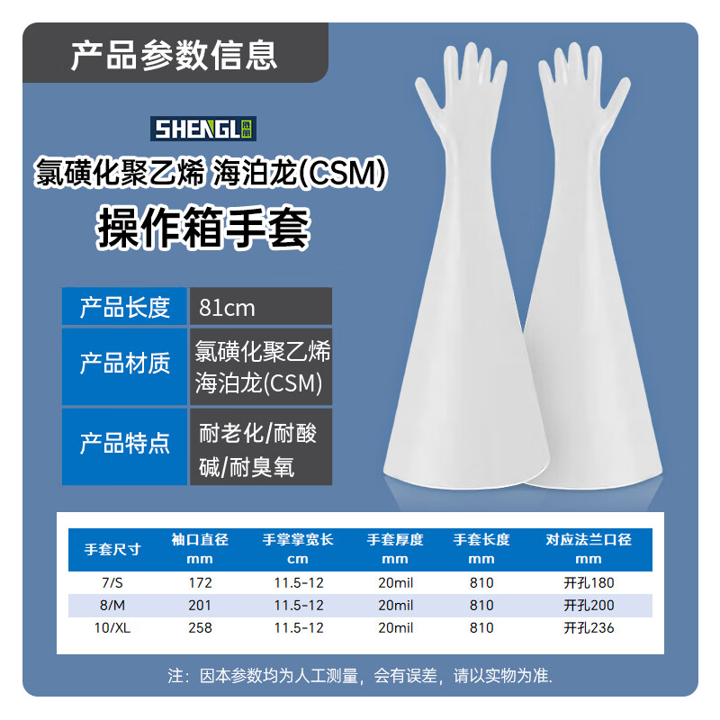 胜丽 白色氯磺化聚乙烯橡胶手套干箱专用手套电池制药厂实验室 1只装 GCB610 袖口258mm