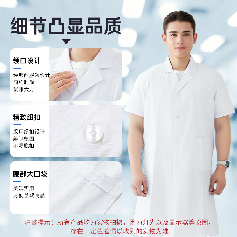 胜丽 (T-Gard) BC520W 白大褂实验服 男款 圣雪兰夏季半袖
