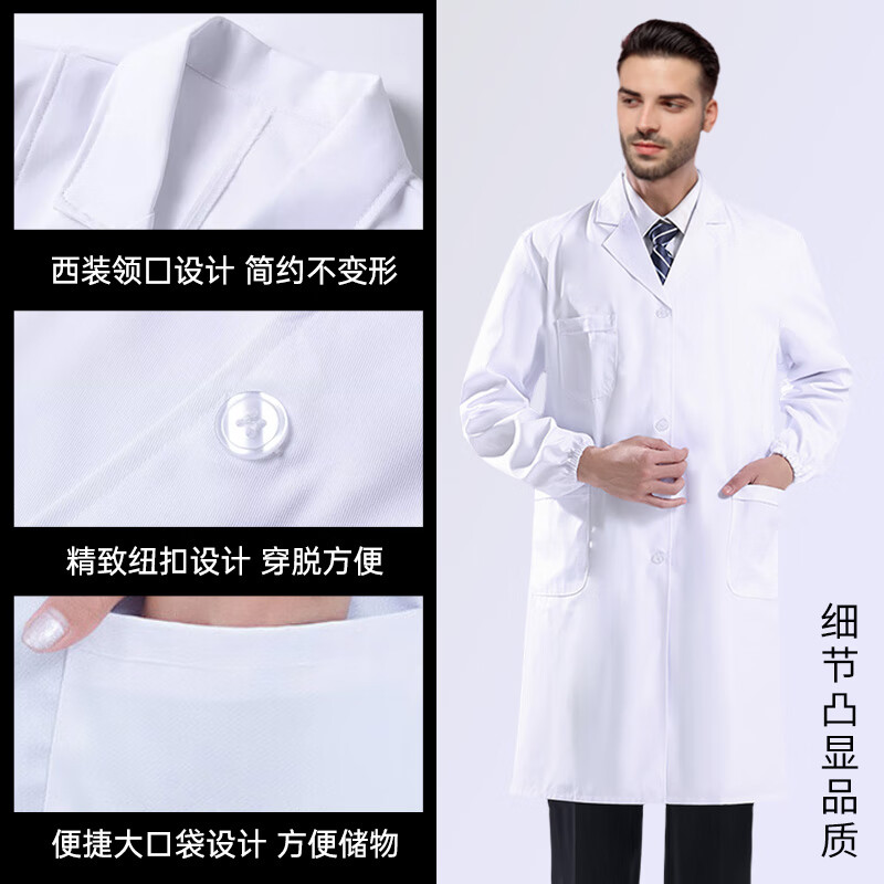 胜丽 (T-Gard) BC406W 长袖白大褂 松紧袖口 男款