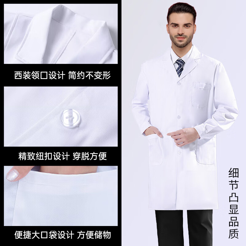 胜丽 (T-Gard) BC406W 长袖白大褂 纽扣款 男款