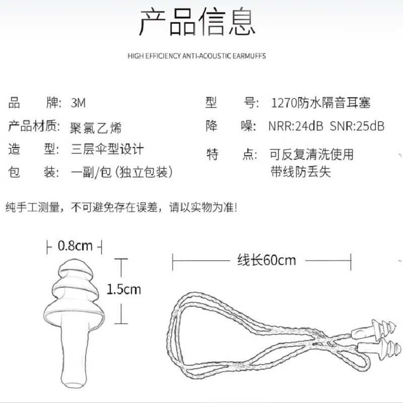 3M 1270 耳塞隔音睡眠防噪音工业降噪25db 圣诞树型带线耳塞 10副装