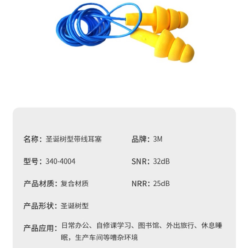 3M 340-4004 圣诞树型带线耳塞隔音防护 1副装