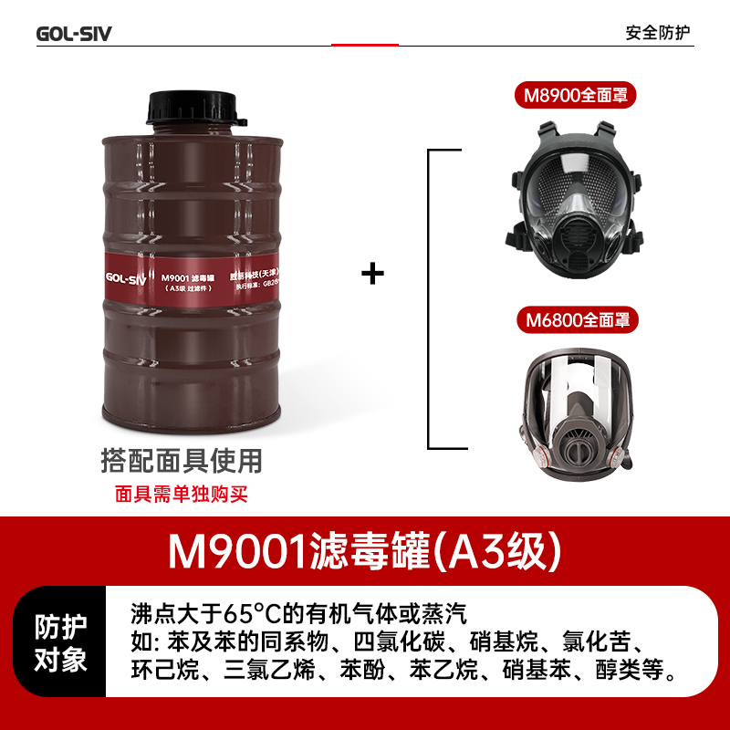 胜丽 GOL-SIV® A类3级滤毒罐搭配防毒面具全面罩防有机气体和蒸气 M9001 1个装 搭配M8900全面罩或M6800全面罩