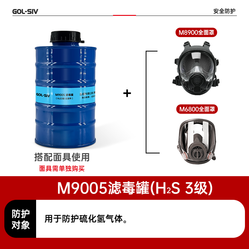 胜丽 M9005 H2S类 3级滤毒 罐搭配防毒面具全面罩防硫化氢 1个装 搭配面罩使用