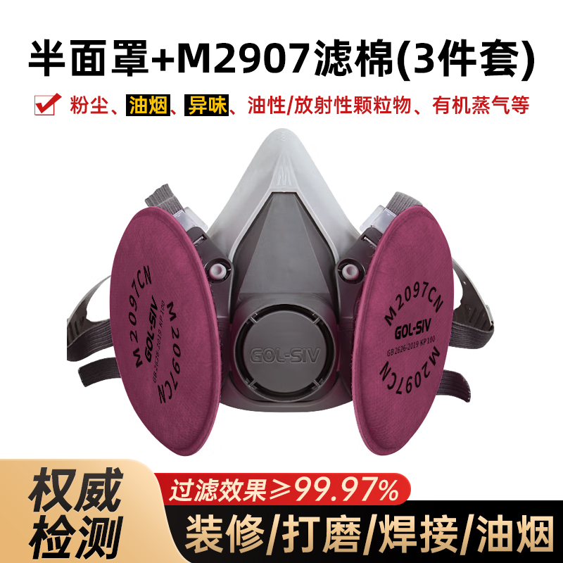 胜丽 M6200 防尘口罩面罩 防电焊烟颗粒物及有机蒸汽异味 装修打磨油烟焊接 配M2097