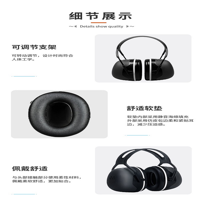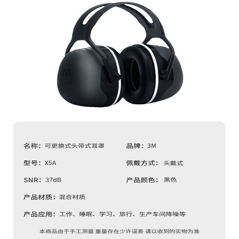3M X5A隔音耳罩 降噪隔音防噪音 黑色可旋转37db 1副装
