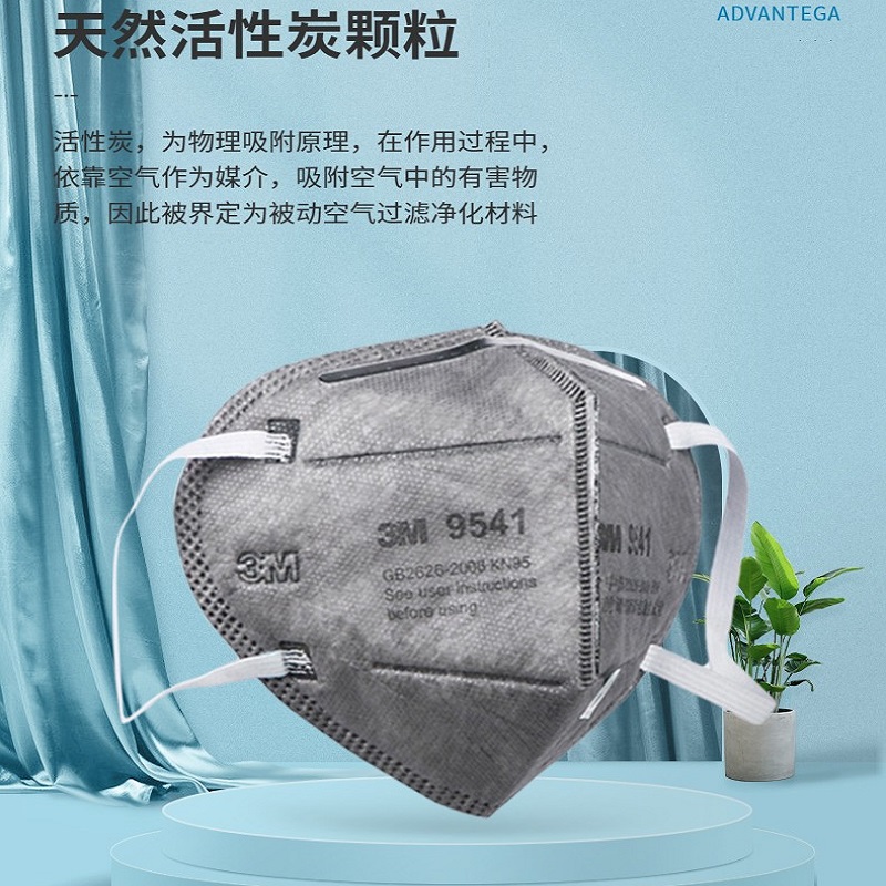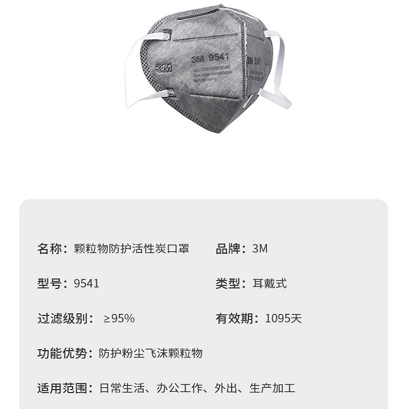 3M 9541 口罩 kn95活性炭口罩 防甲流飞沫防雾霾防PM2.5防工业粉尘颗粒物花粉防异味耳戴式 独立包装25只盒装