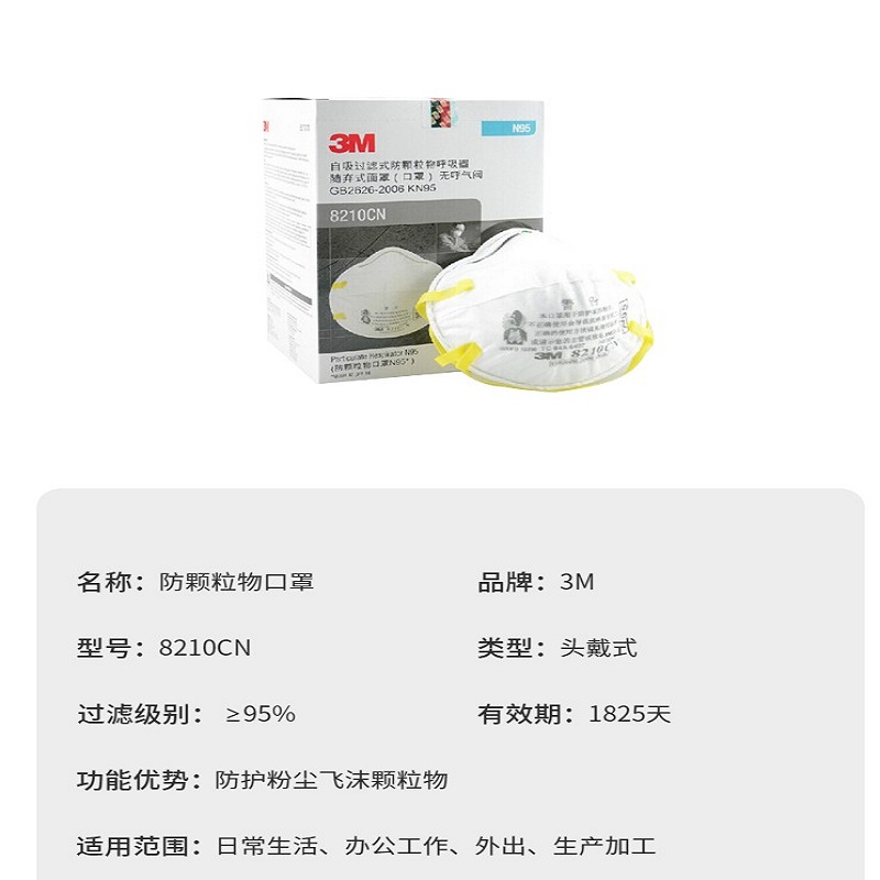 3M 8210CN 防尘口罩 防颗粒物防烟防花粉 N95工业防护 20只/盒
